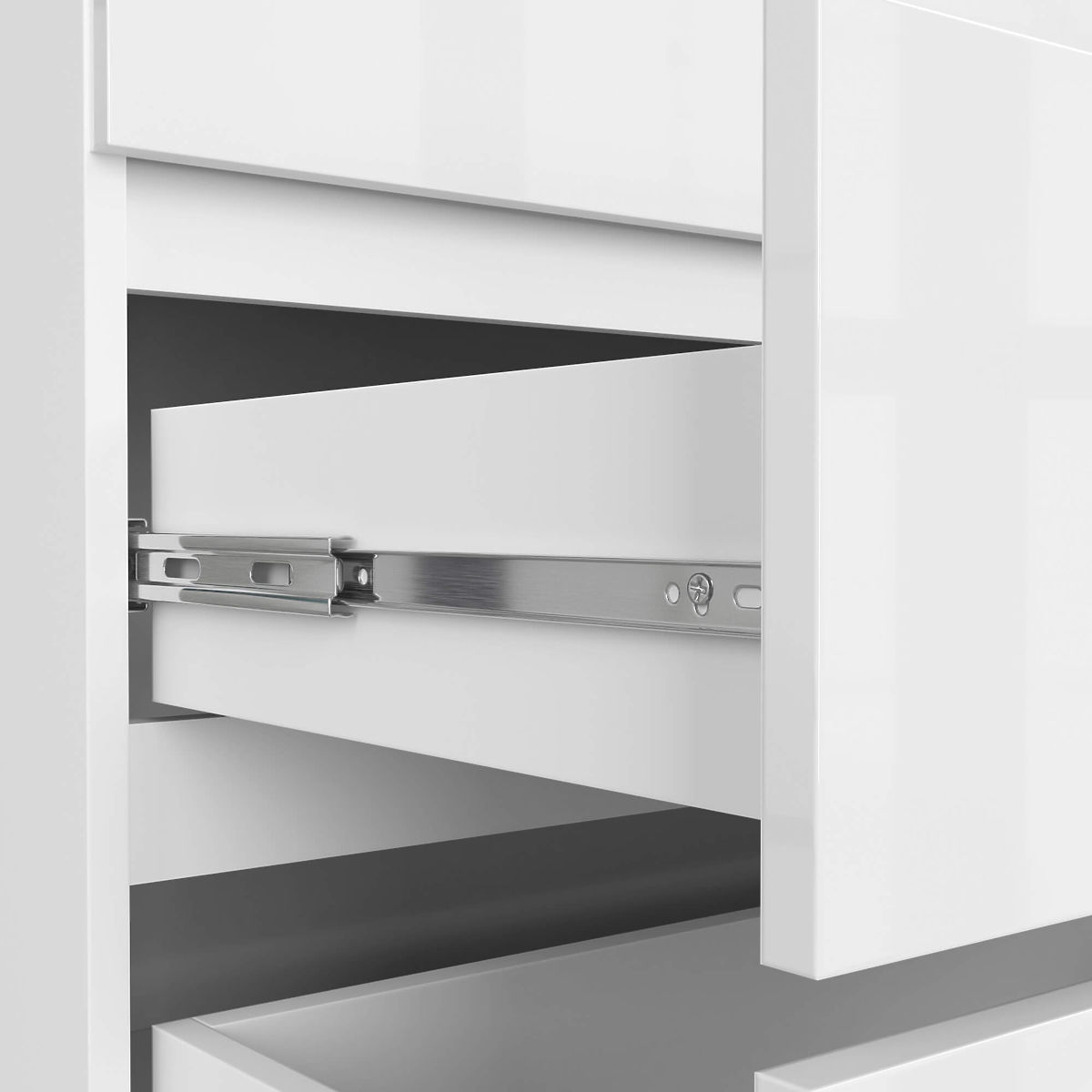 - Szuflady poruszają się na metalowych prowadnicach kulkowych