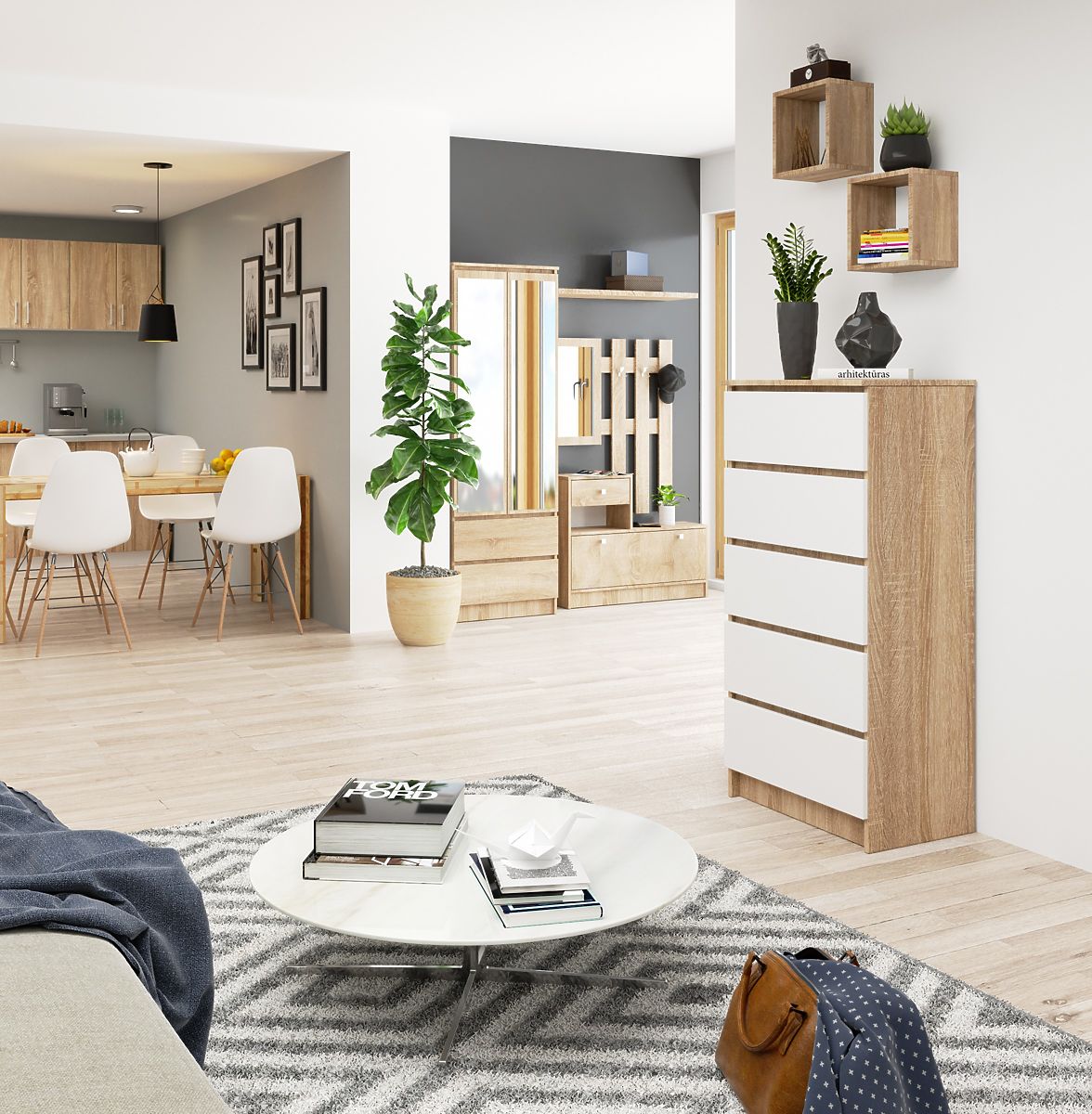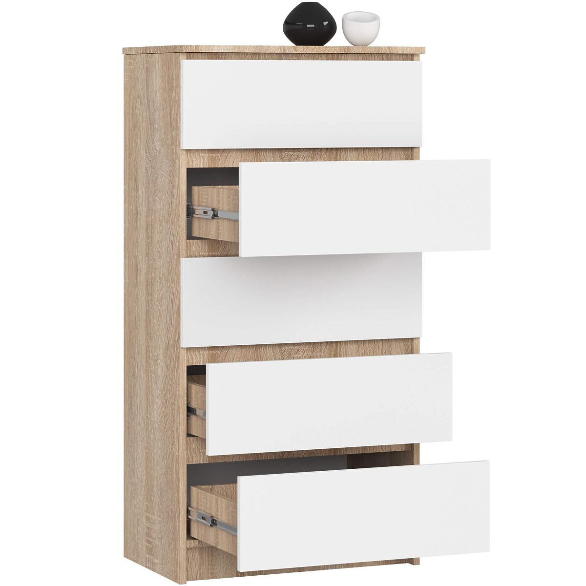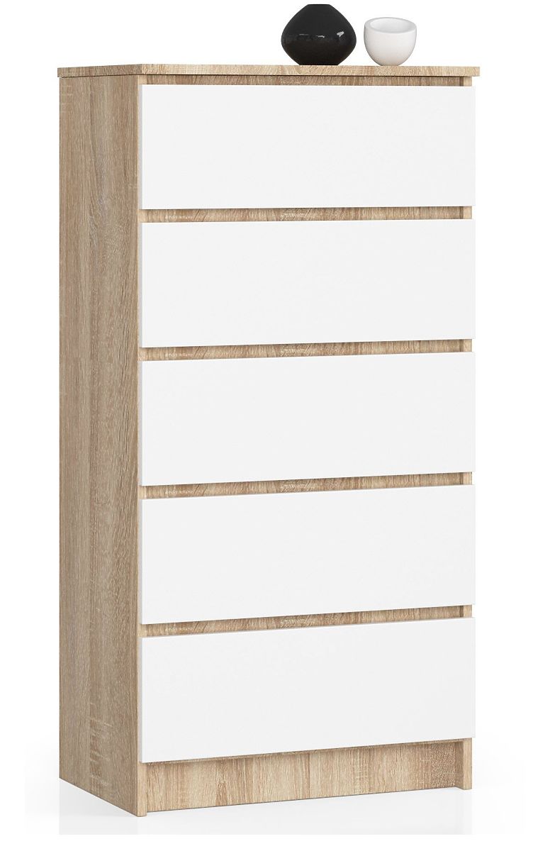 Komoda z pięcioma szufladami w kolorze dąb sonoma i białym. .. więcej