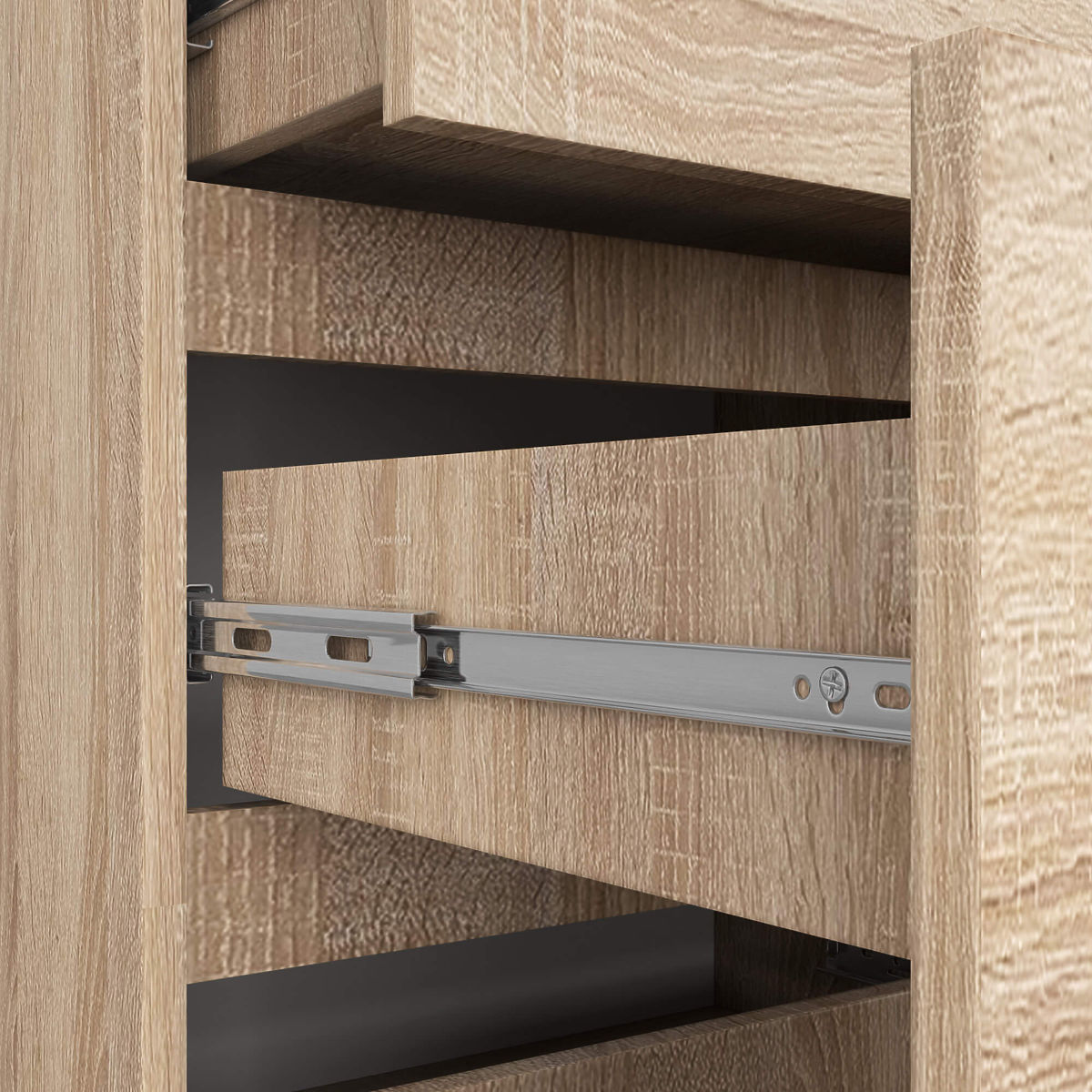 Dziesięć przestronnych szuflad to idealne miejsce do przechowywania dokumentów, pudełek z drobiazgami czy ubrań. Ułatwia to utrzymanie porządku w mieszkaniu bardziej niż kiedykolwiek! Płynne wysuwanie i wsuwanie szuflad zapewniają metalowe prowadnice kulkowe, dzięki czemu nic się nie zacina, a ruch szuflady jest gładki i cichy.