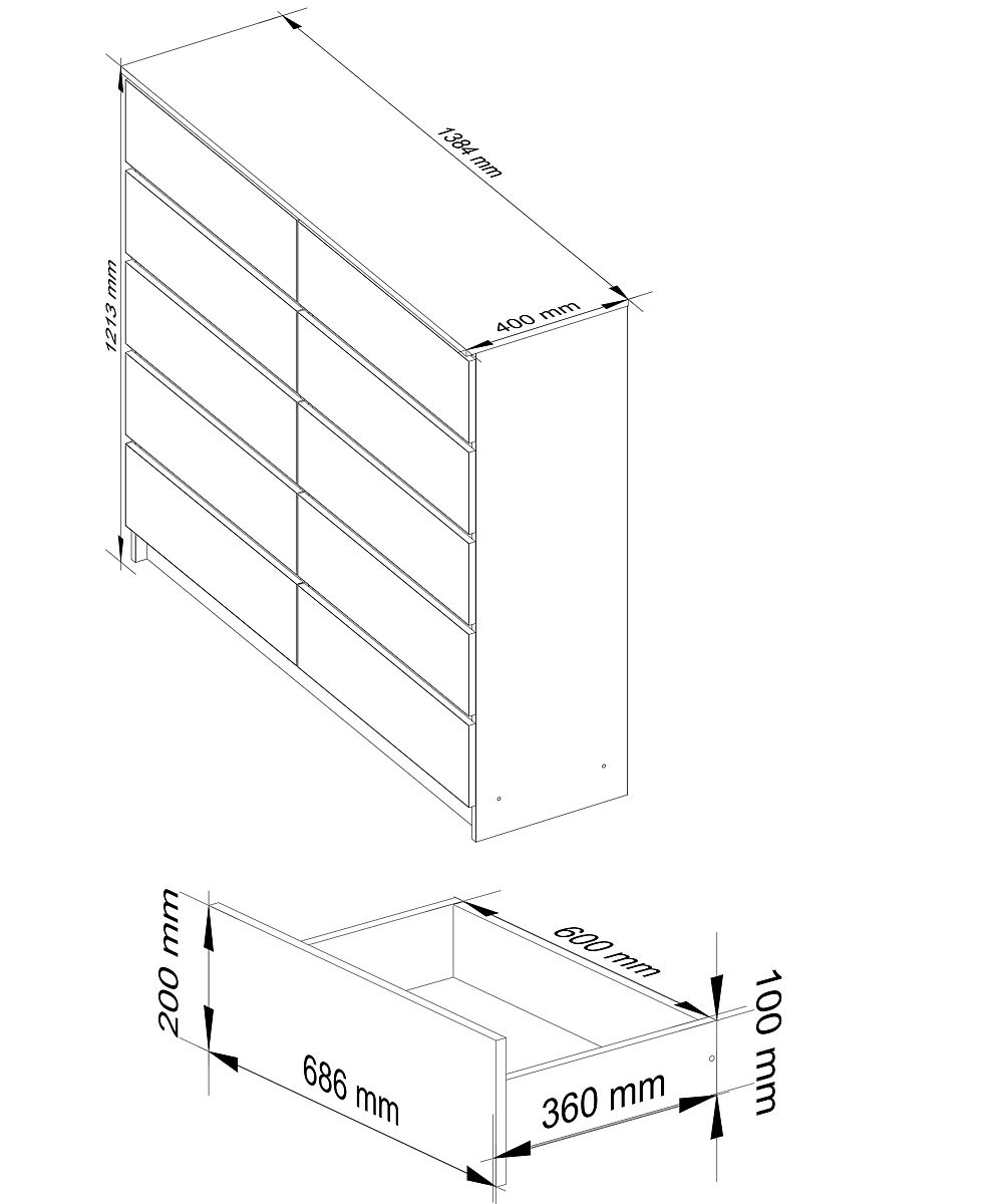 - Fronty szuflad wykonane z trwałej laminowanej płyty