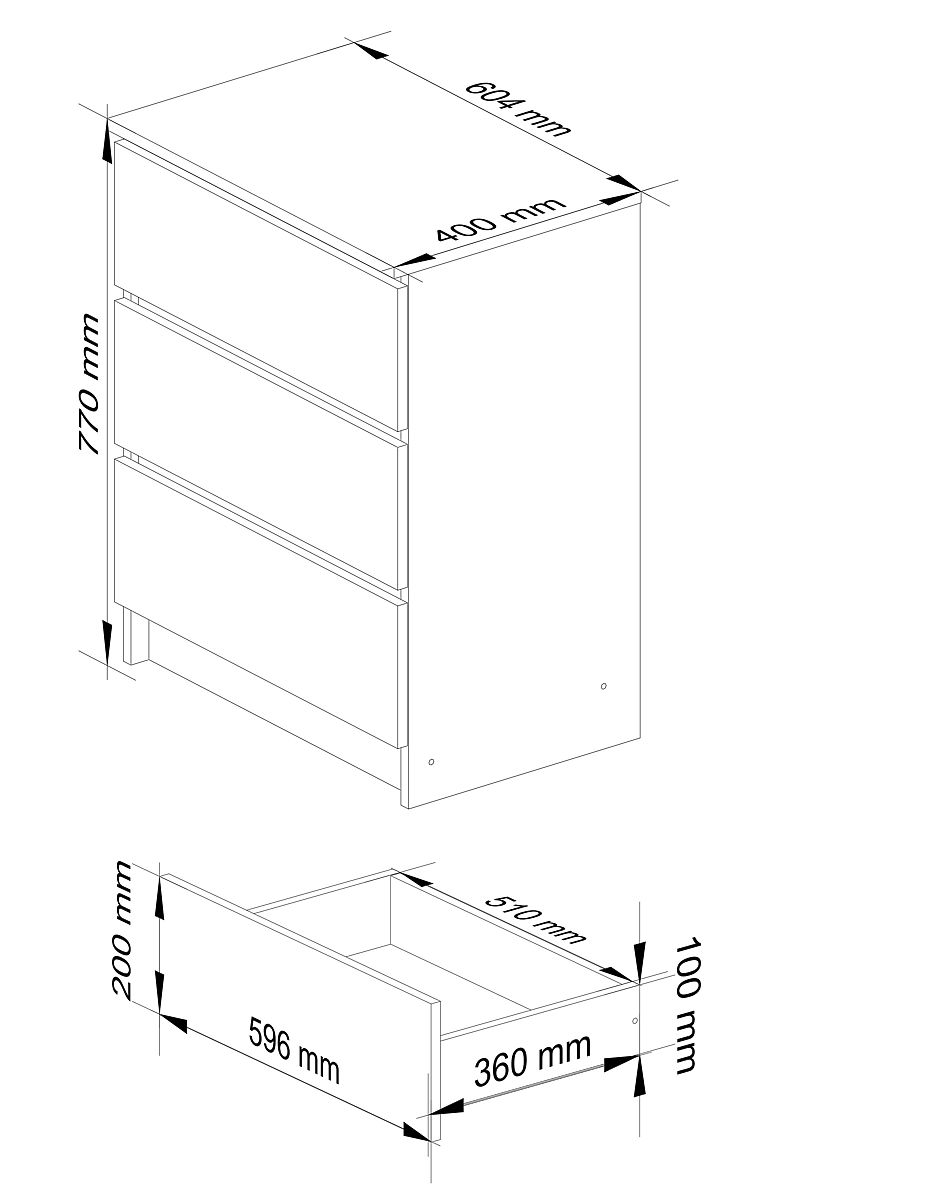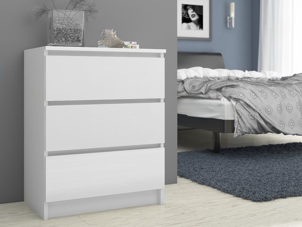 BIAŁA KOMODA K60 3 SZUFLADY Wykonana z 16mm laminowanej płyty odpornej na ścieranie.