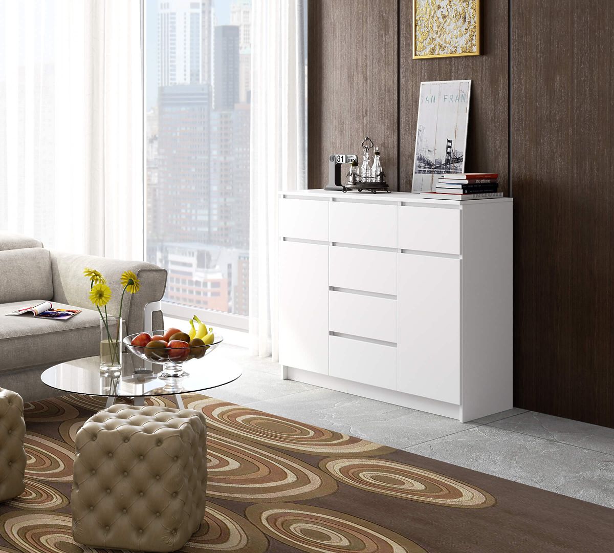 Komoda z sześcioma szufladami i dwoma drzwiami, biała, 120x99x40 cm. .. więcej