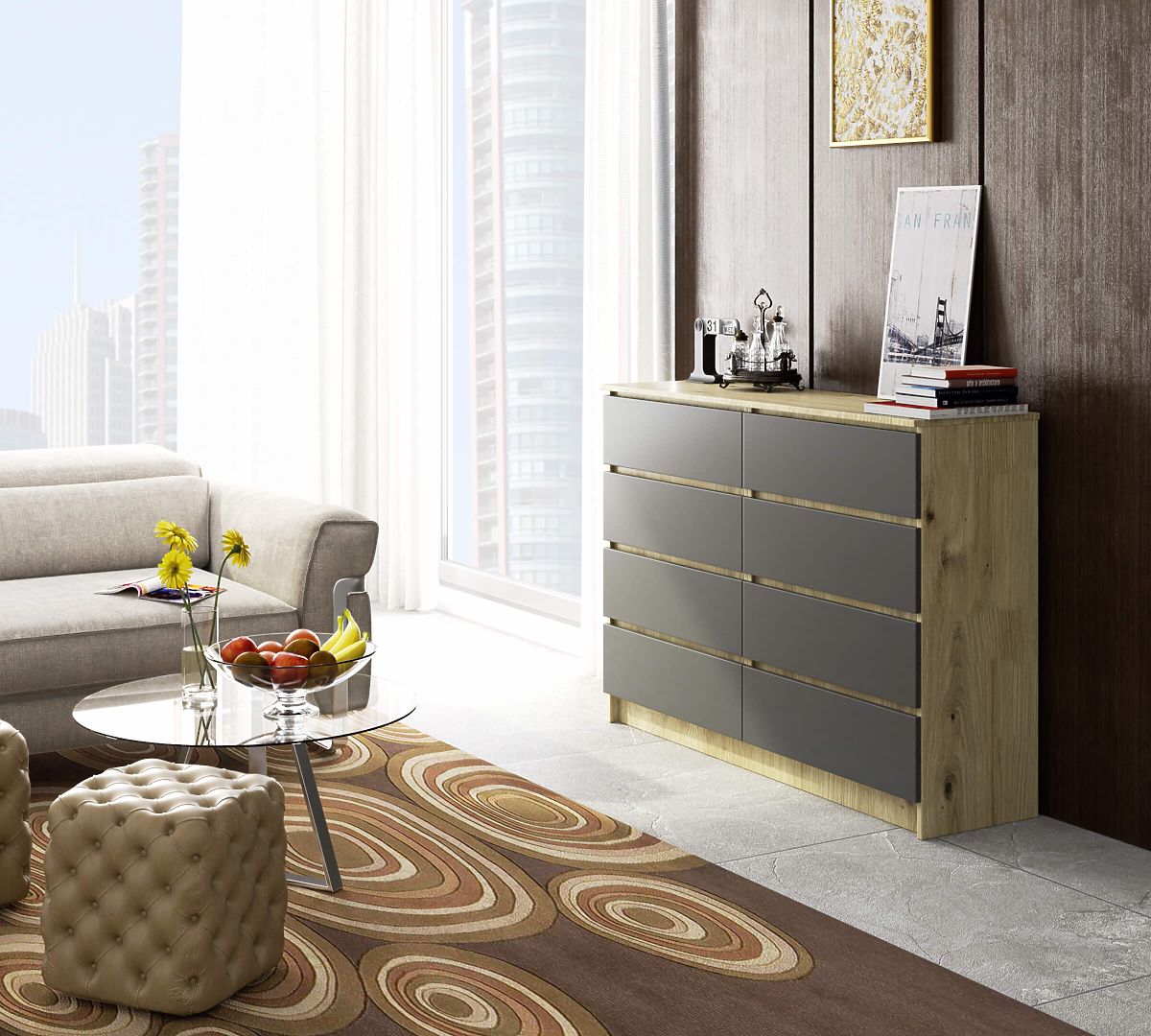Komoda z 8 szufladami w kolorze dąb artisan i szary. .. więcej