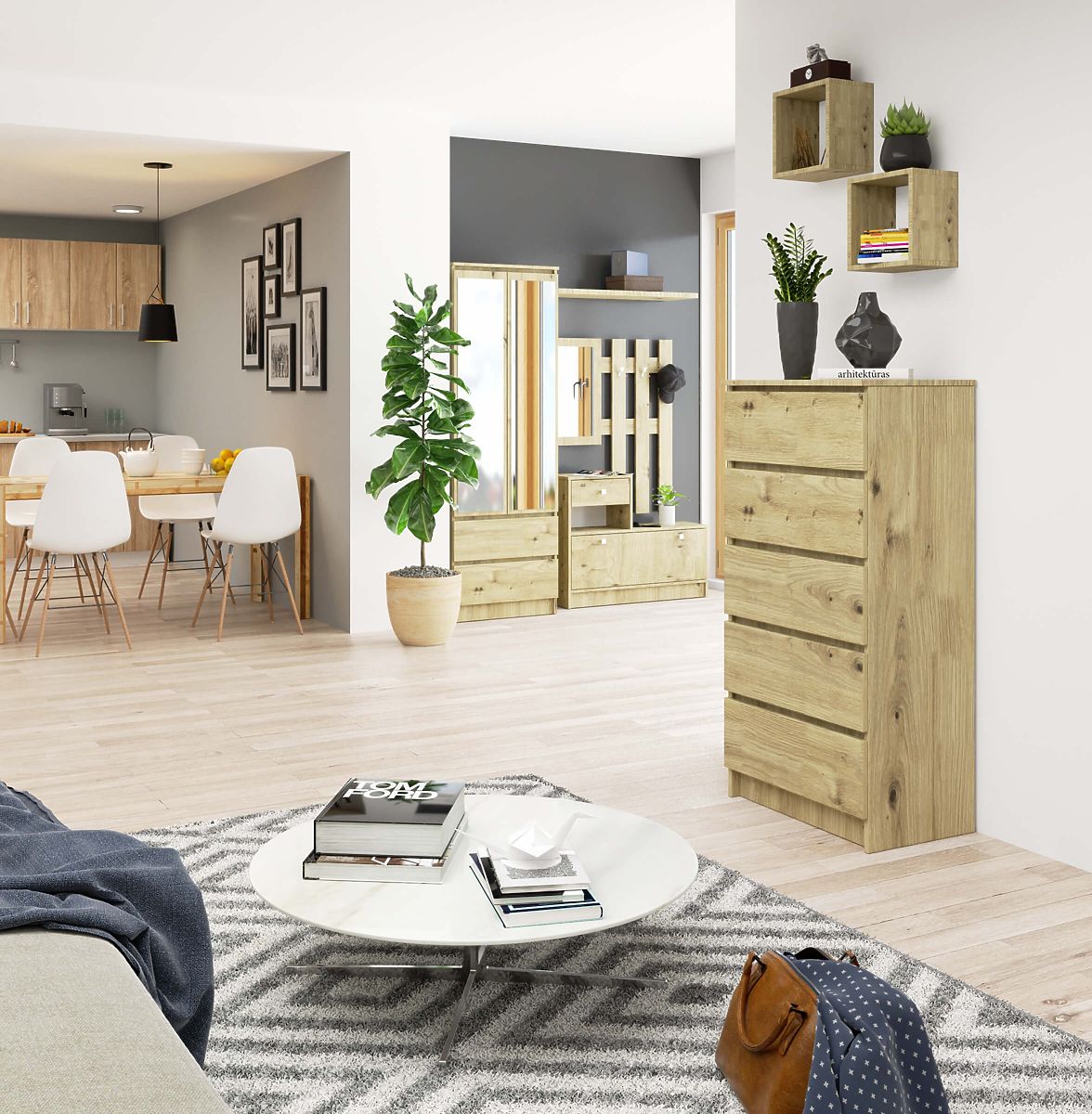 Komoda z 5 szufladami z laminowanej płyty dąb artisan. .. więcej