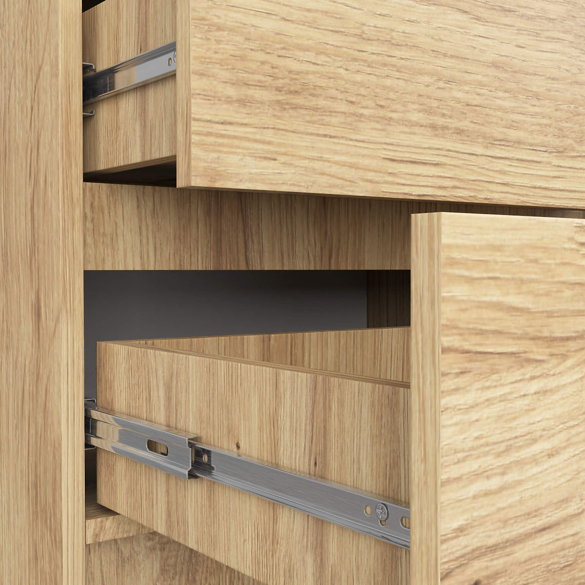 - Szuflady poruszają się na metalowych prowadnicach kulkowych - Krawędzie oklejone obrzeżem ABS zapewniającym wysoką ochronę przed uszkodzeniami