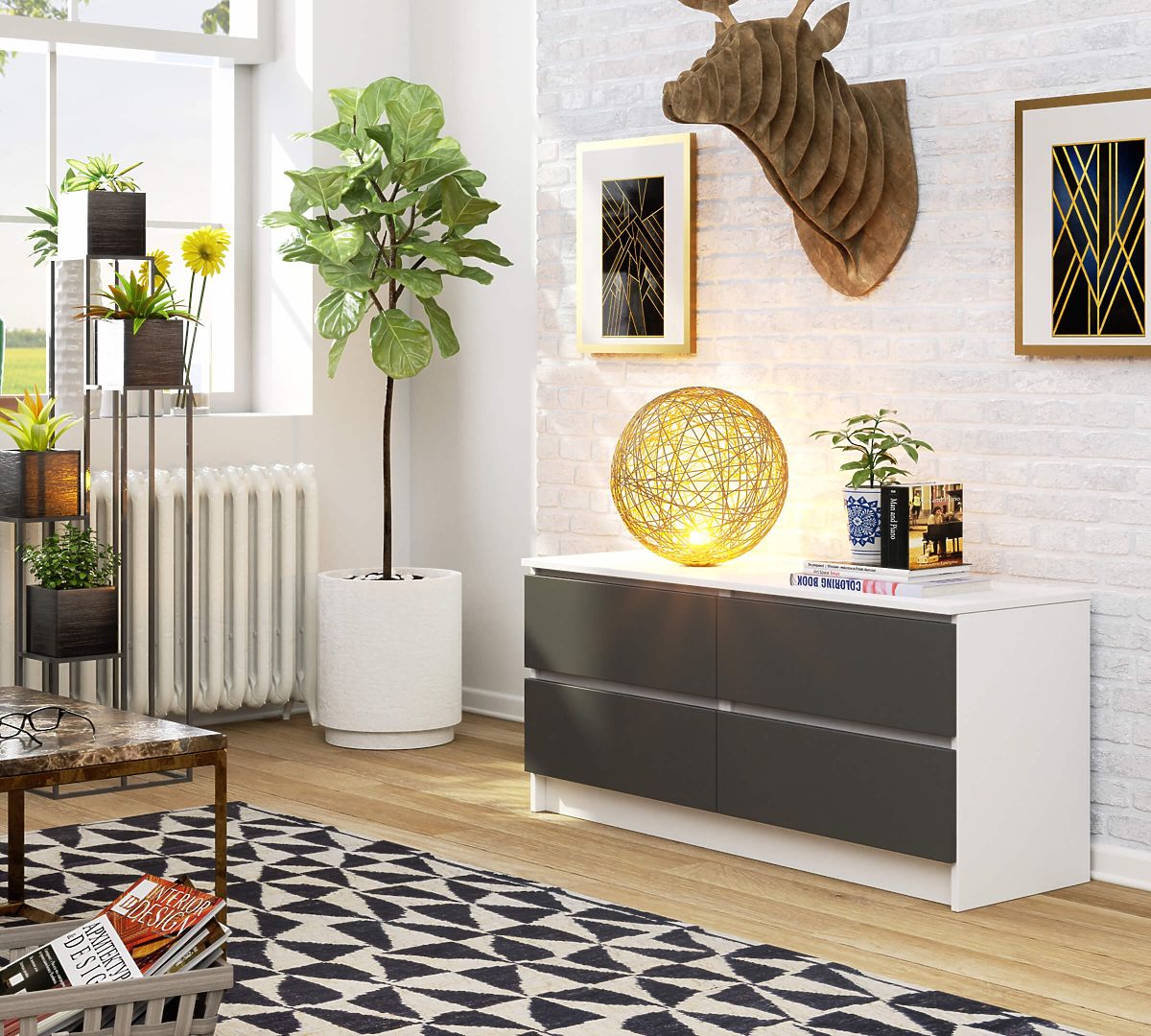 - Komoda wykonana z laminowanej płyty odpornej na ścieranie