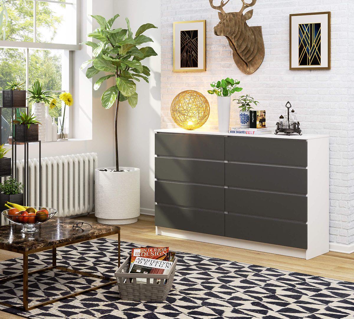 Komoda z 8 szufladami, biała i szara, 160cm szerokości. .. więcej