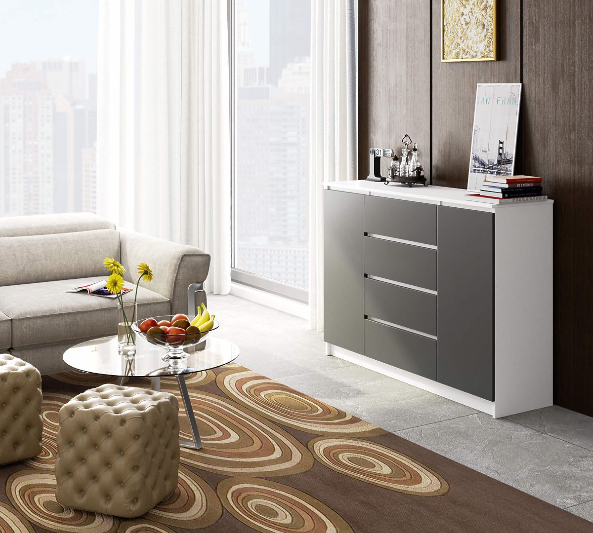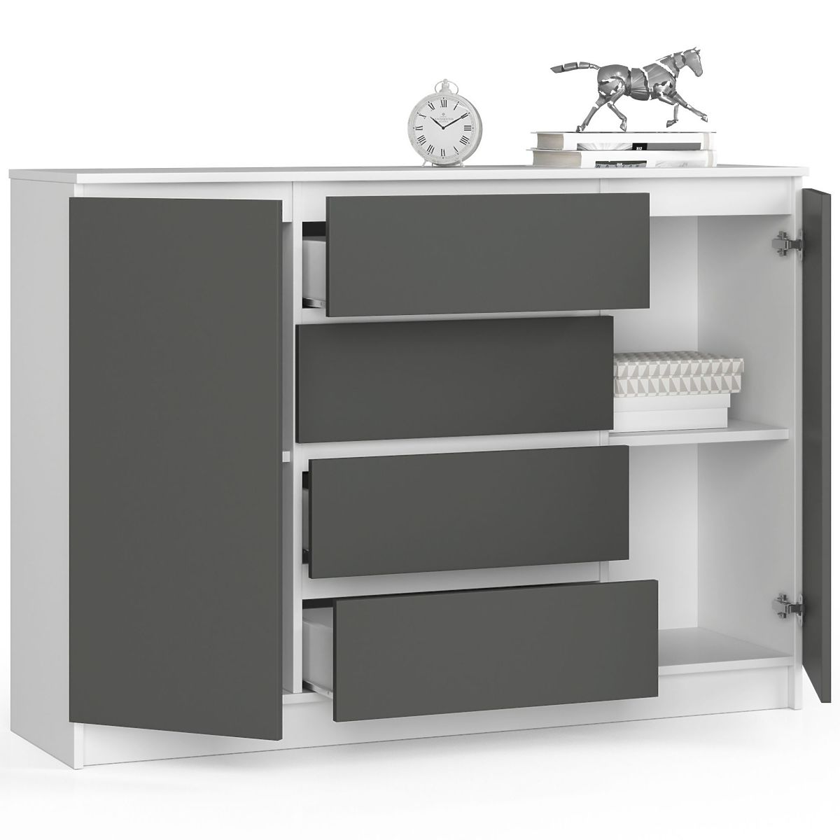Komoda z 2 drzwiami i 4 szufladami w kolorze białym i szarym. .. więcej