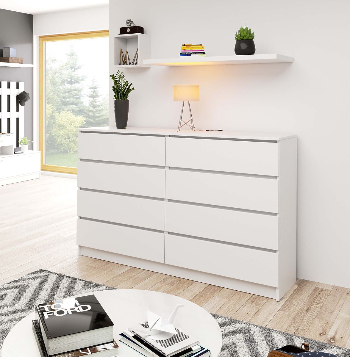 Biała komoda z 8 szufladami o szerokości 160 cm. .. więcej