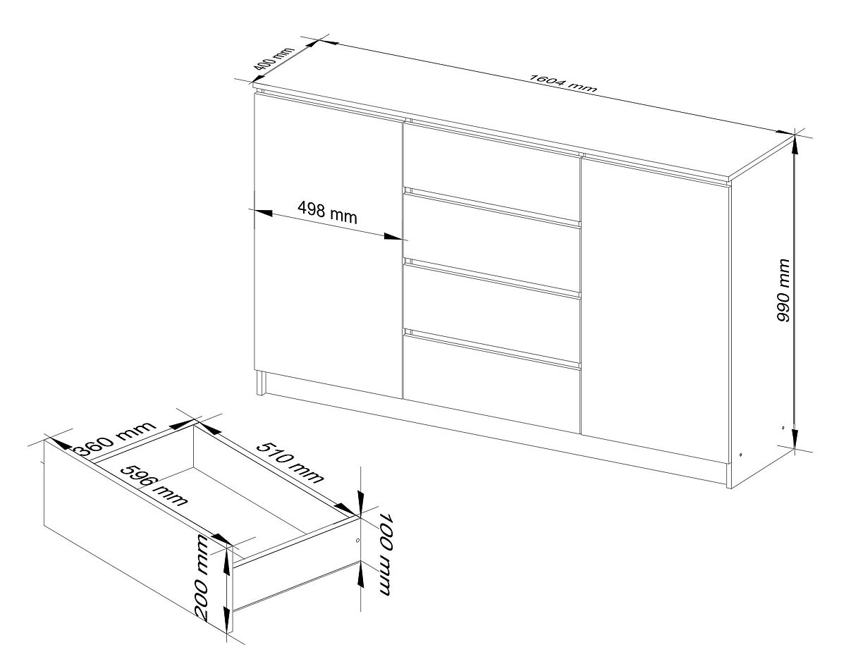 - Komoda wykonana z wysokiej jakości płyty laminowanej 16mm odpornej na ścieranie, producent kronospan