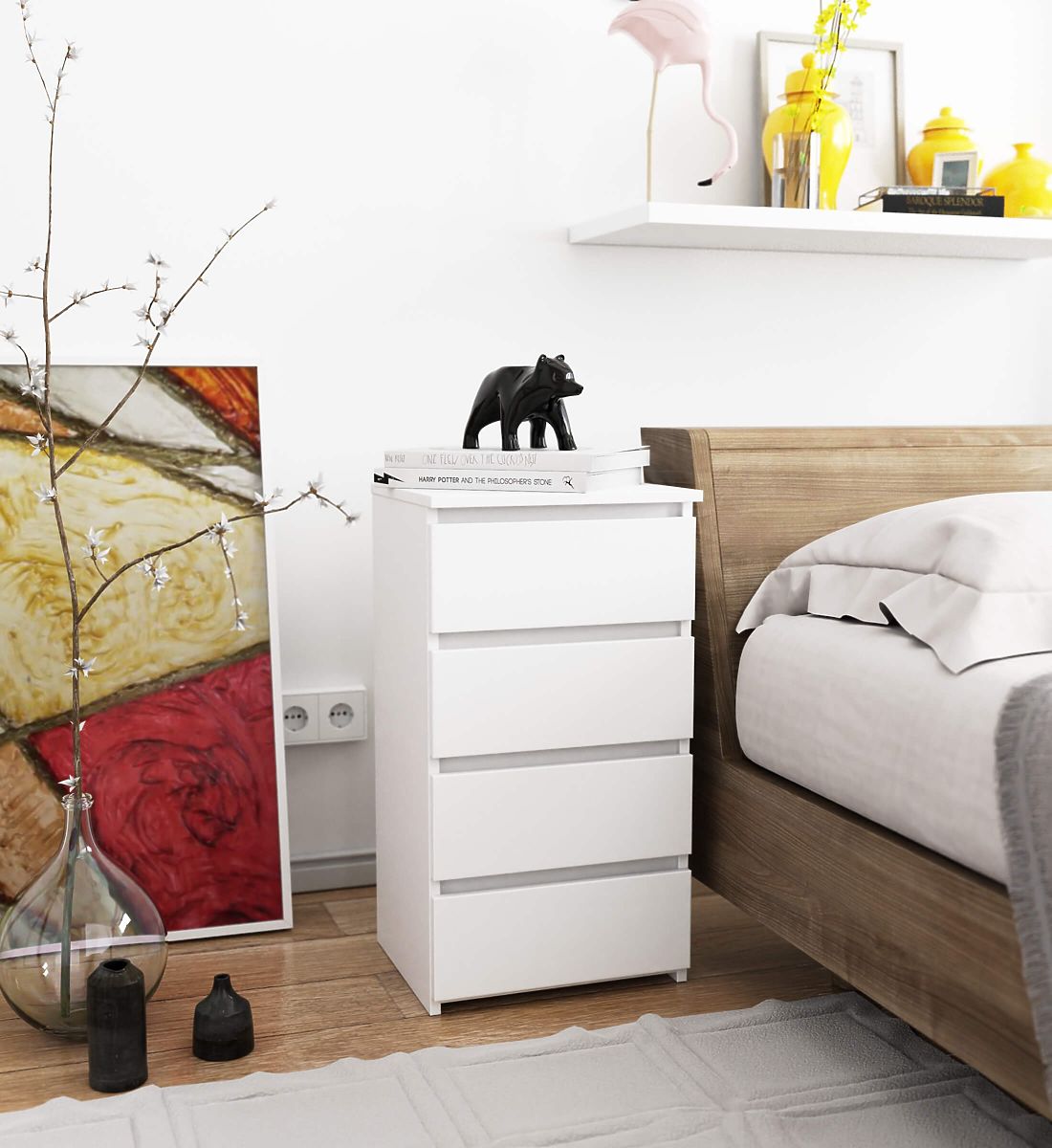 Komody są popularnym rodzajem mebli, które umieszcza się obok łóżka. Na jej blacie najczęściej znajduje się lampka, a wewnątrz przedmioty ułatwiające odpoczynek i sen. Osoby szukające eleganckiej komody powinny zwrócić uwagę na komodę CL4 40 cm w białym kolorze. Będzie pięknie prezentować się w każdej sypialni. Można ją również umieścić w pokoju dziecięcym.