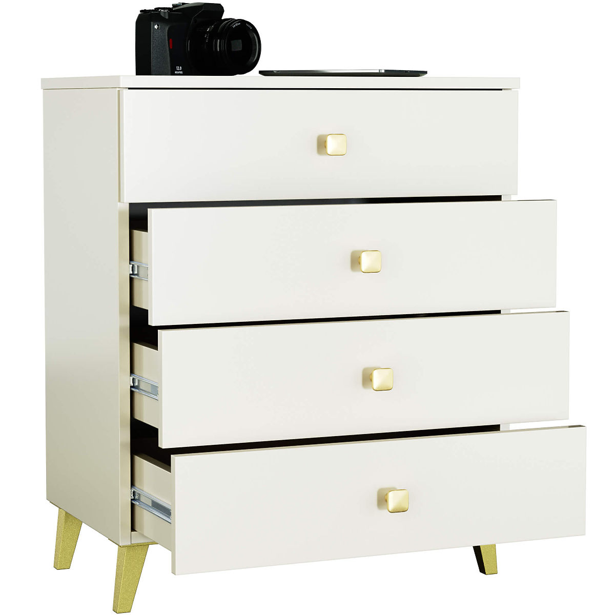 KOMODA MOBI 4 SZUFLADY KASZMIROWO-ZŁOTA