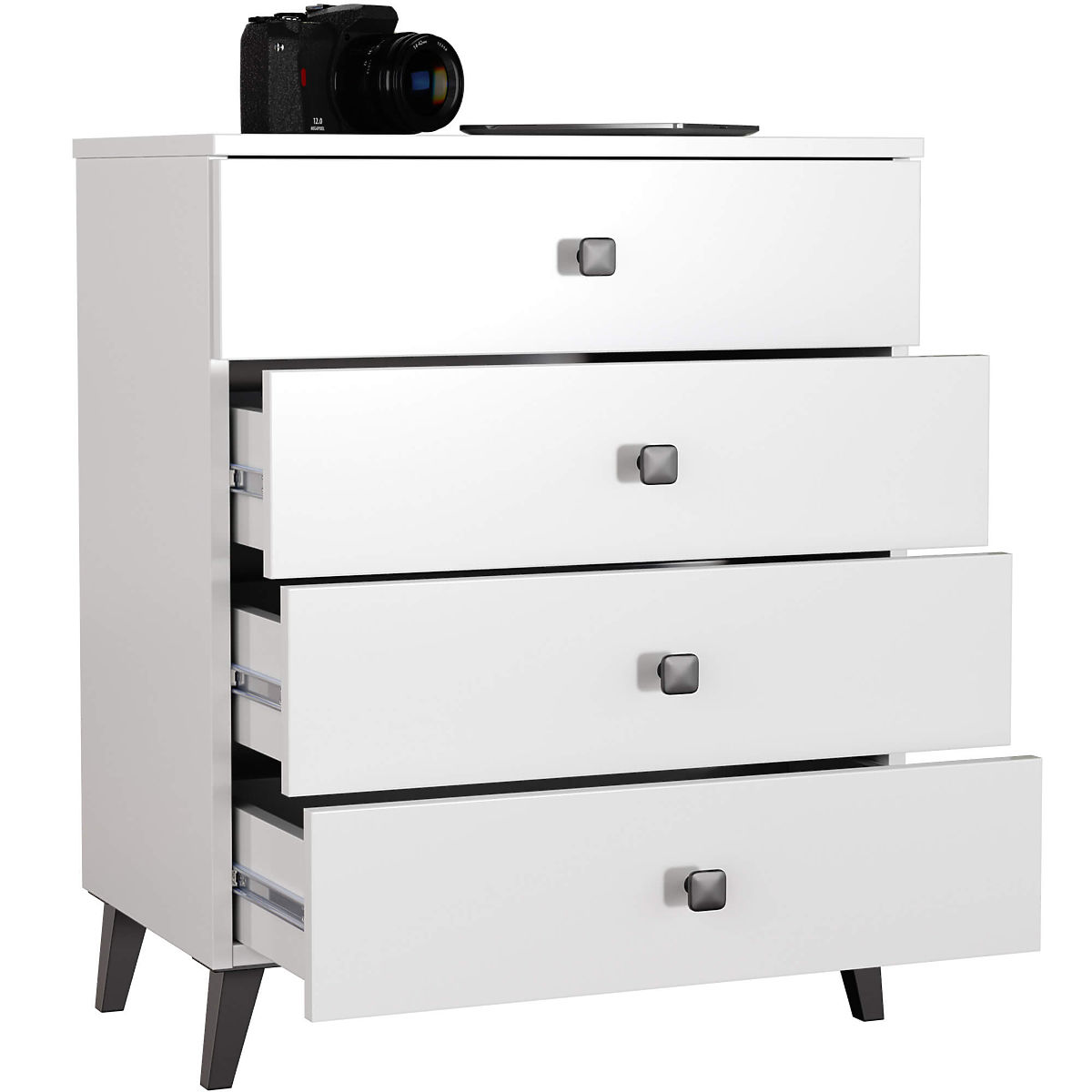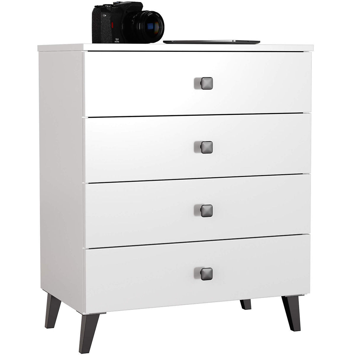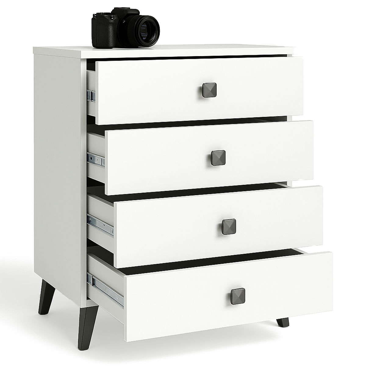 KOMODA MOBI 4 SZUFLADY BIAŁA CZARNA