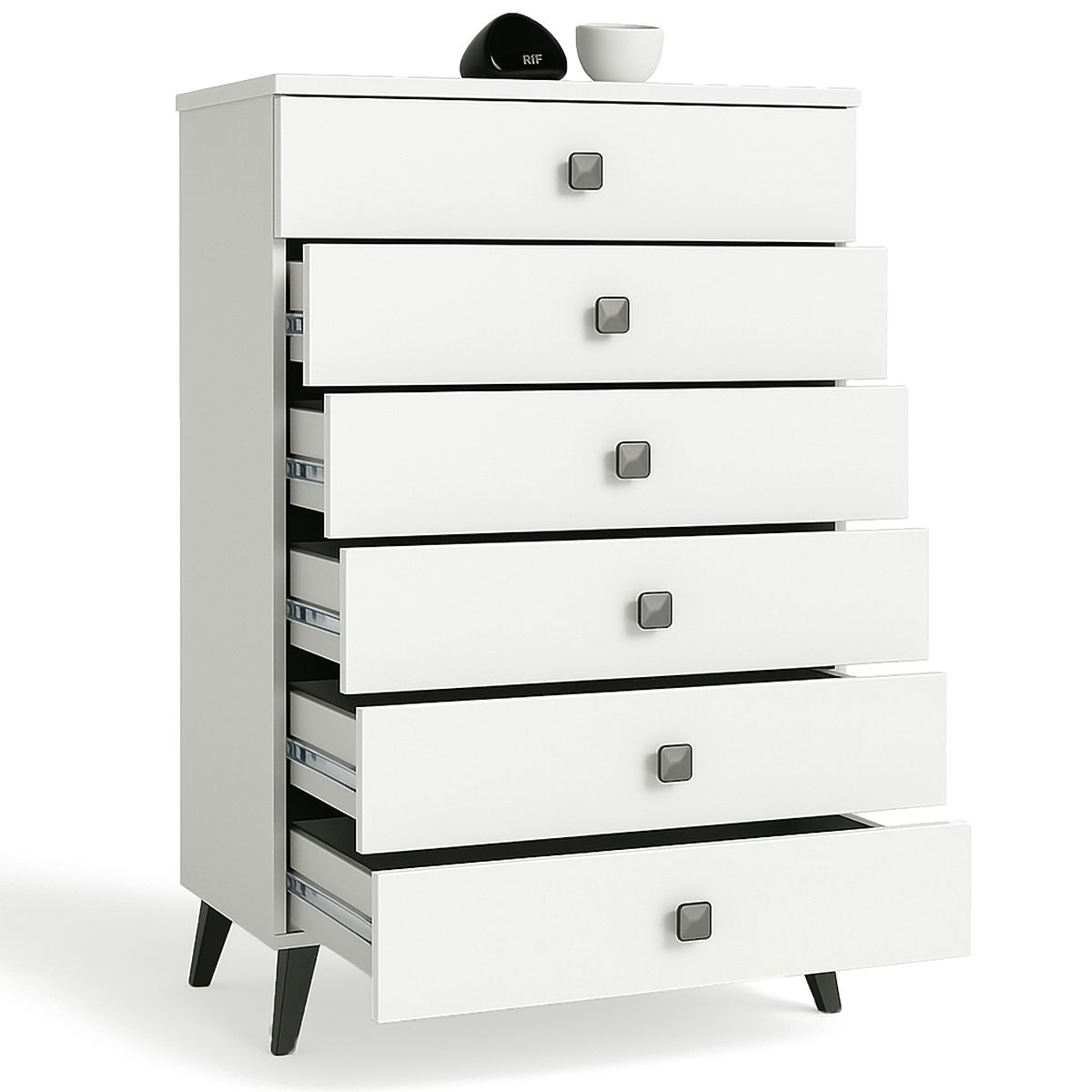 KOMODA MOBI 6 SZUFLAD BIAŁA CZARNA