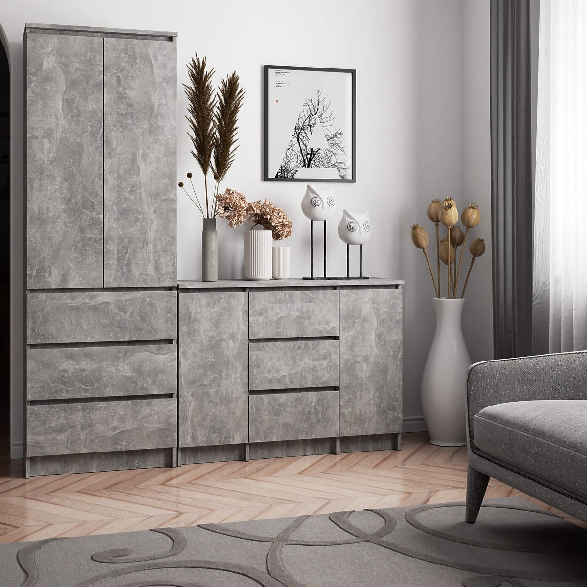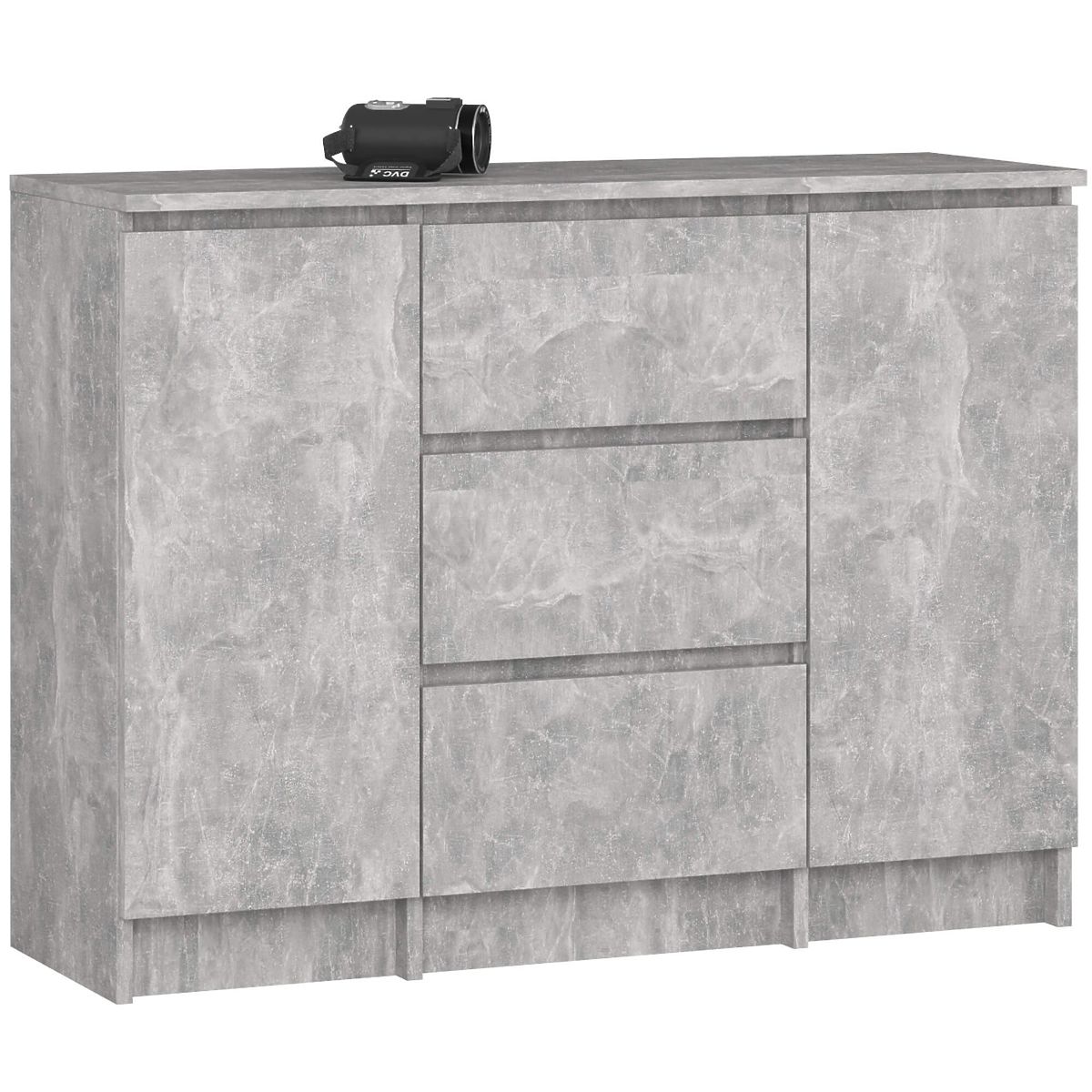 Komoda z laminowanej płyty w kolorze betonu z 3 szufladami i 2 drzwiami. .. więcej