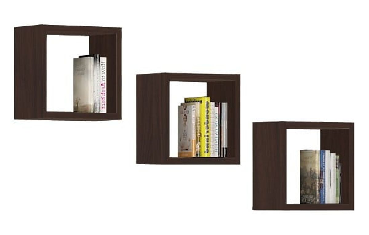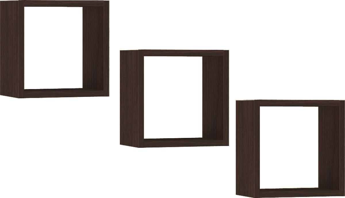 Zestaw trzech półek ściennych z laminowanej płyty w kolorze wenge. .. więcej