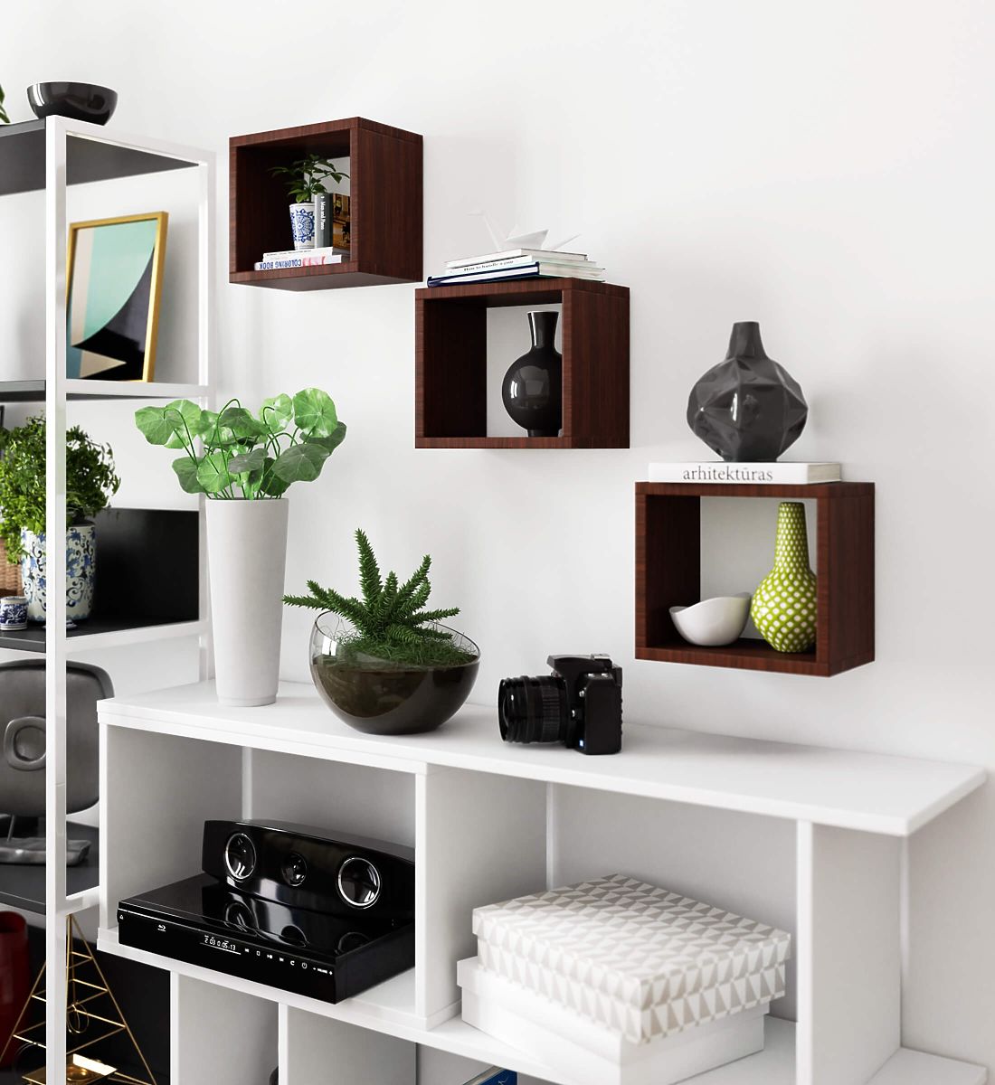 Trzy półki ścienne dostępne w naszej ofercie to interesujące rozwiązanie, które można z powodzeniem wykorzystać w każdym nowocześnie urządzonym wnętrzu. Nasza oferta wykonana jest z laminowanej płyty o grubości 16 milimetrów. Ten materiał wykazuje wysoką odporność na ścieranie. Krawędzie półek są oklejone obrzeżem ABS. Zestaw zawiera trzy kwadratowe półki o wymiarach 25 x 25 centymetrów. Nowoczesna kolorystyka dąb sonoma i wysoka jakość tego interesującego rozwiązania sprawiają, że półki są bardzo popularne wśród klientów naszego sklepu internetowego.