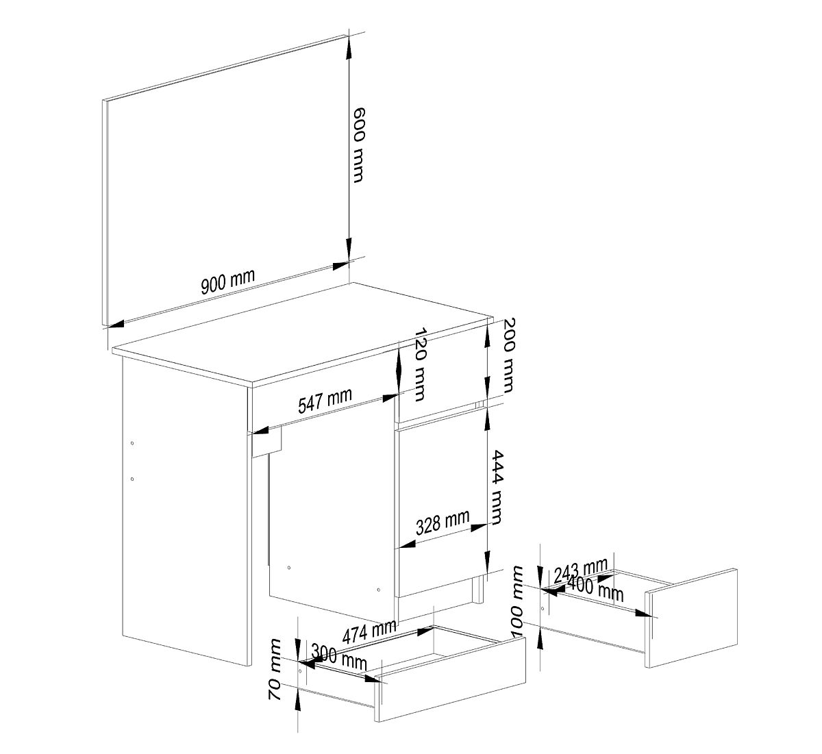 Kompaktowa wersja toaletki dla kobiet, które chcą mieć możliwość szybkiego makijażu rano. Rozwiązanie przeznaczone do sypialni i nie tylko. Wymiary toaletki doskonale pasują również do salonów kosmetycznych.