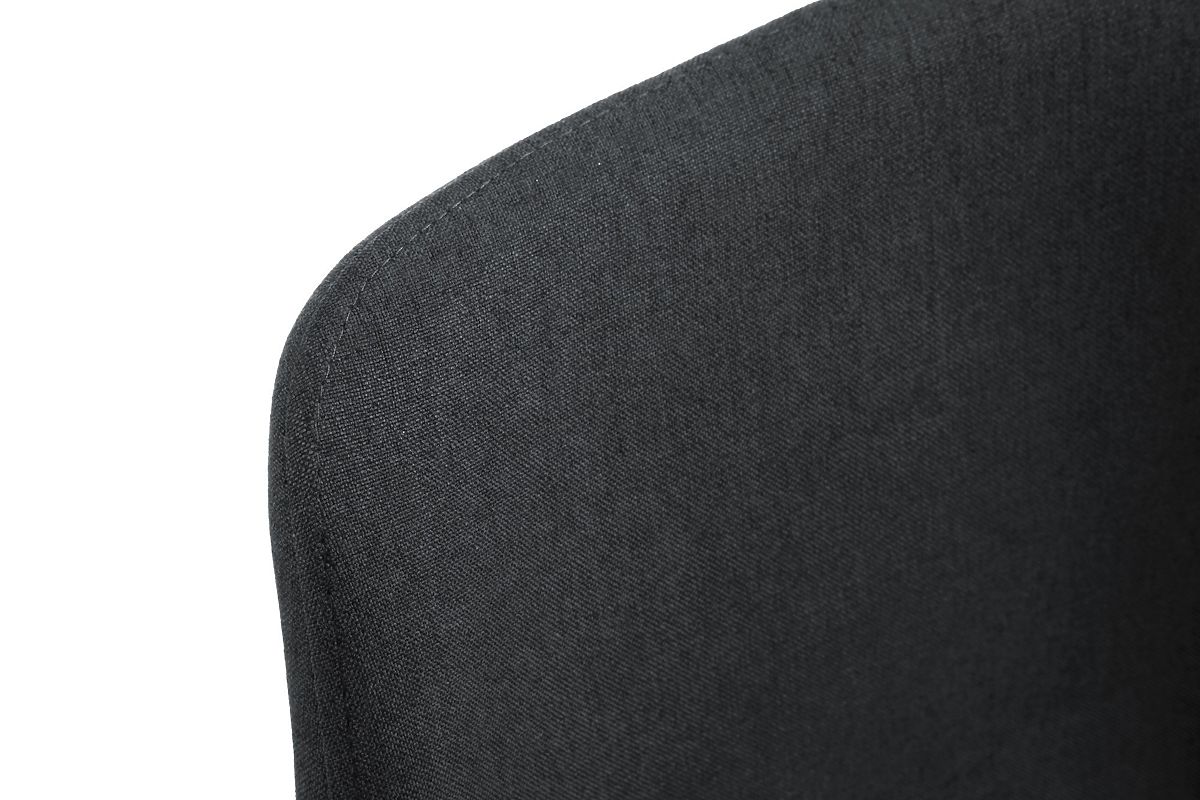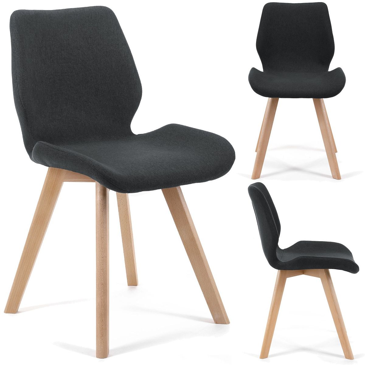 Krzesło skandynawskie z czarną tkaniną i drewnianymi nogami. .. więcej