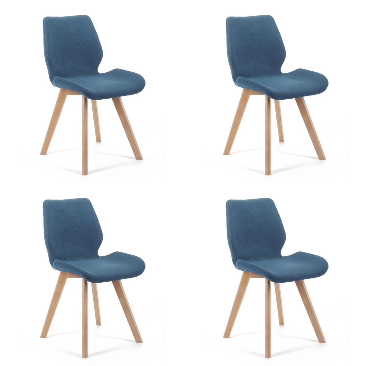 Eleganckie krzesło w kolorze niebieskim. Drewniane nogi nadają produktowi nowoczesności i stylu. Krzesło jest bardzo ładne i wygodne dzięki tkaninowej tapicerce. Pasuje do salonu, biura, sypialni, poczekalni lub recepcji. Krzesła sprzedawane są w zestawach - 4 sztuki w jednym opakowaniu.
