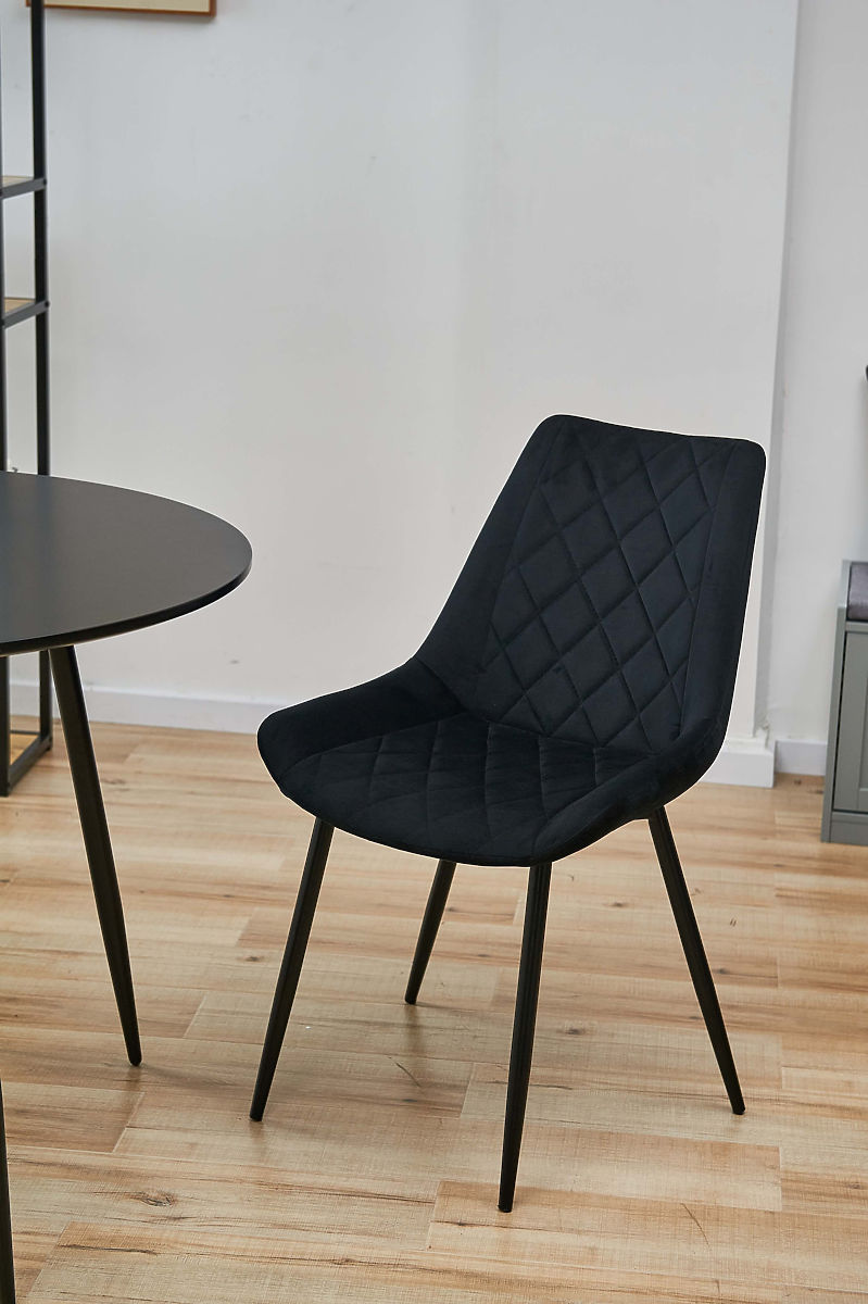 Pikowane krzesło SJ.0488 z weluru z czarnymi metalowymi nogami. .. więcej