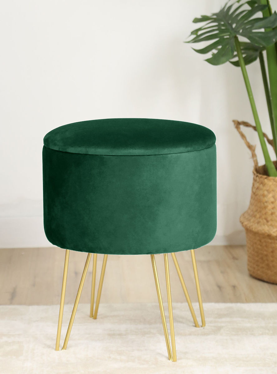 Podnóżek lub pufa to doskonały dodatek do salonu lub sypialni. Dzięki niej zmęczone nogi po całym dniu chodzenia mogą odpocząć, a gdy pufa wykonana jest z miękkiego weluru, tylko potęguje to przyjemne uczucie relaksu. Nowoczesny wygląd uzupełniają metalowe nóżki pomalowane na złoty kolor, który jest w tym roku tak modny. Otwierana pokrywa zapewnia dostęp do przestrzeni do przechowywania, gdzie możemy schować przedmioty, których nie potrzebujemy na co dzień.