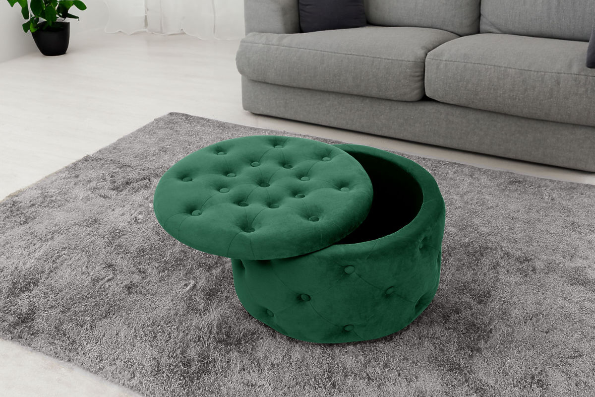 Podnóżek lub pufa to doskonały dodatek do salonu lub sypialni. Dzięki niej zmęczone nogi po całym dniu chodzenia mogą odpocząć, a jeśli pufa jest wykonana z miękkiego weluru, tylko potęguje to przyjemne uczucie relaksu. Nowoczesny wygląd uzupełniają pikowania, które nadają naszej pufie elegancki styl. Otwierane wieko zapewnia dostęp do przestrzeni do przechowywania, gdzie możemy schować przedmioty, których nie potrzebujemy na co dzień.Specyfikacja: