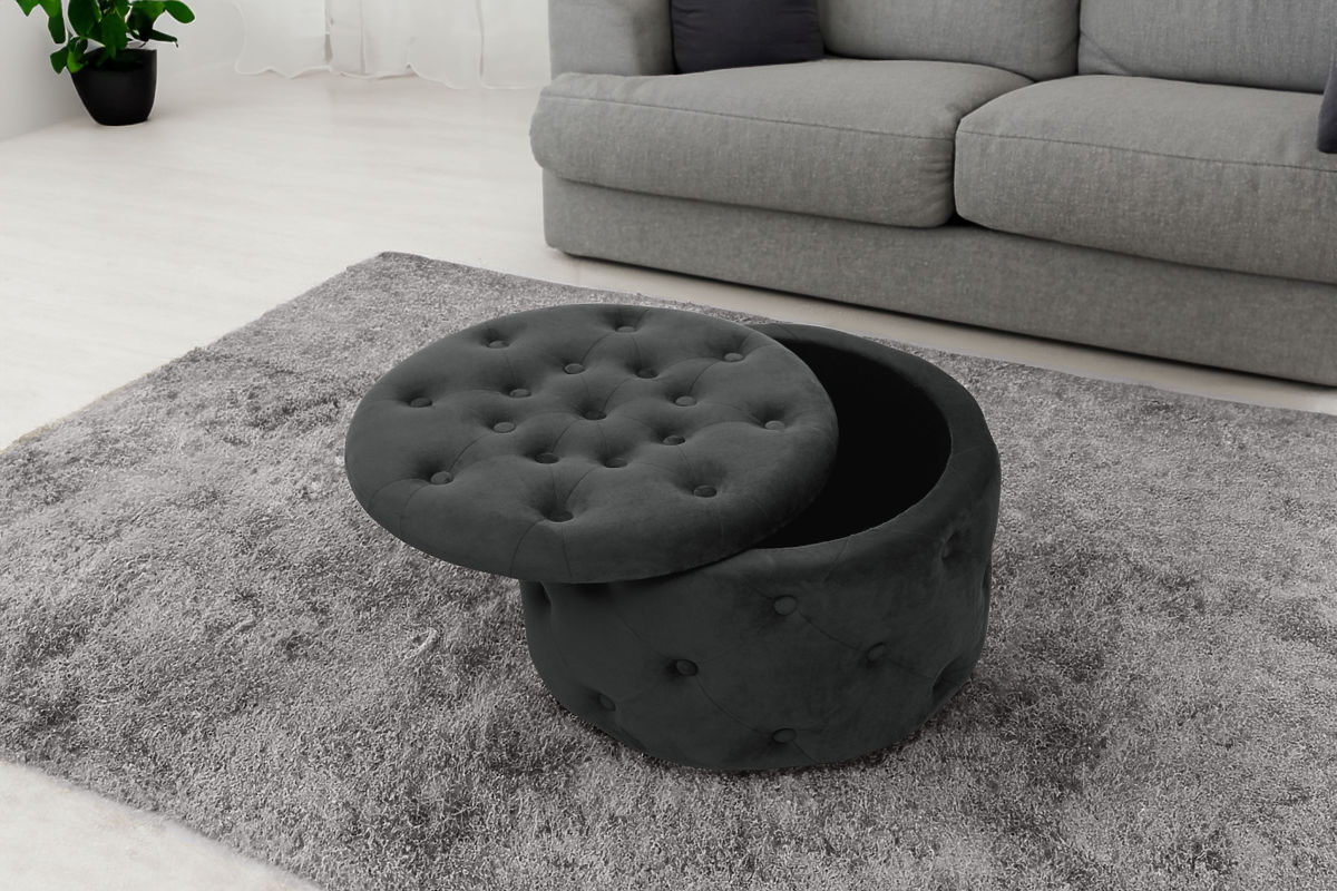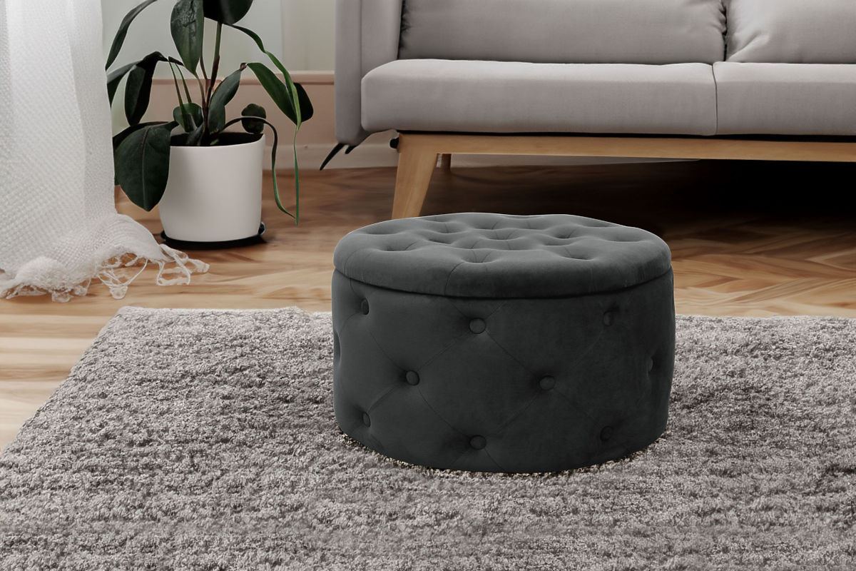Pikowana pufa z miejscem do przechowywania do salonu.