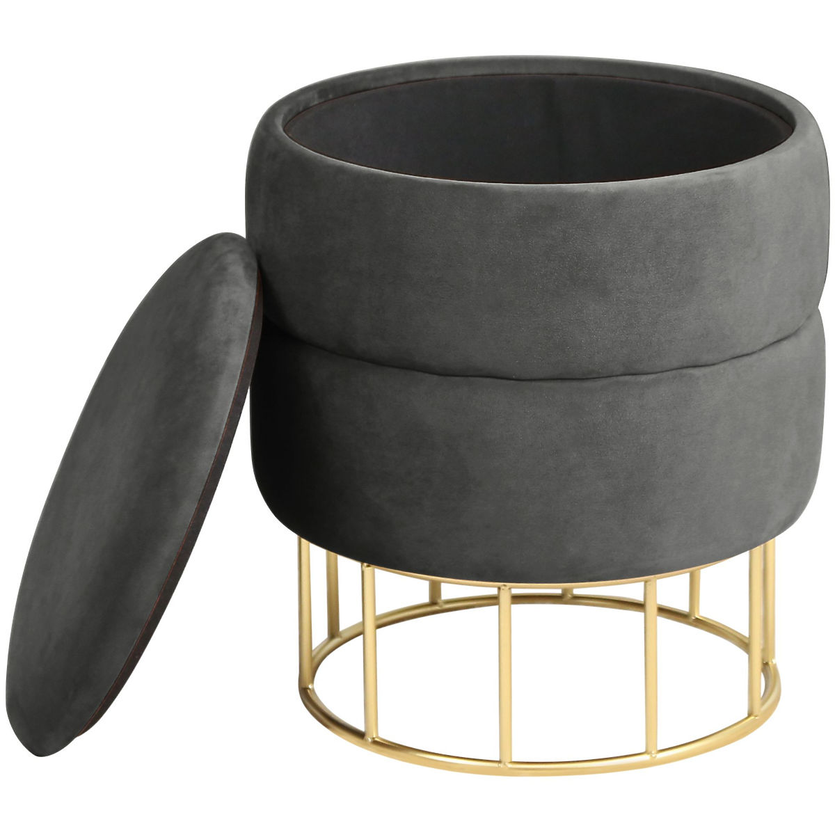 Pufa z miejscem do przechowywania na złotej podstawie. .. więcej