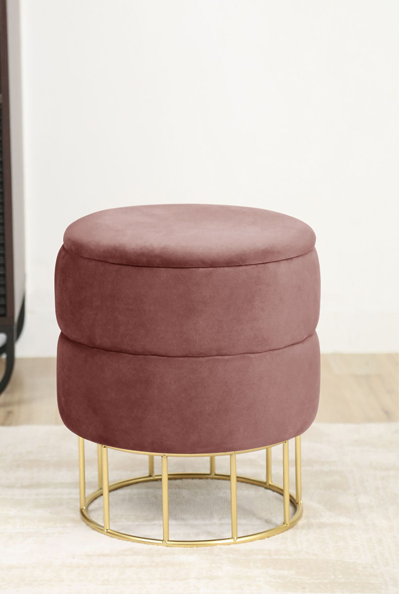 Pufa z weluru z miejscem do przechowywania na złotej podstawie. .. więcej