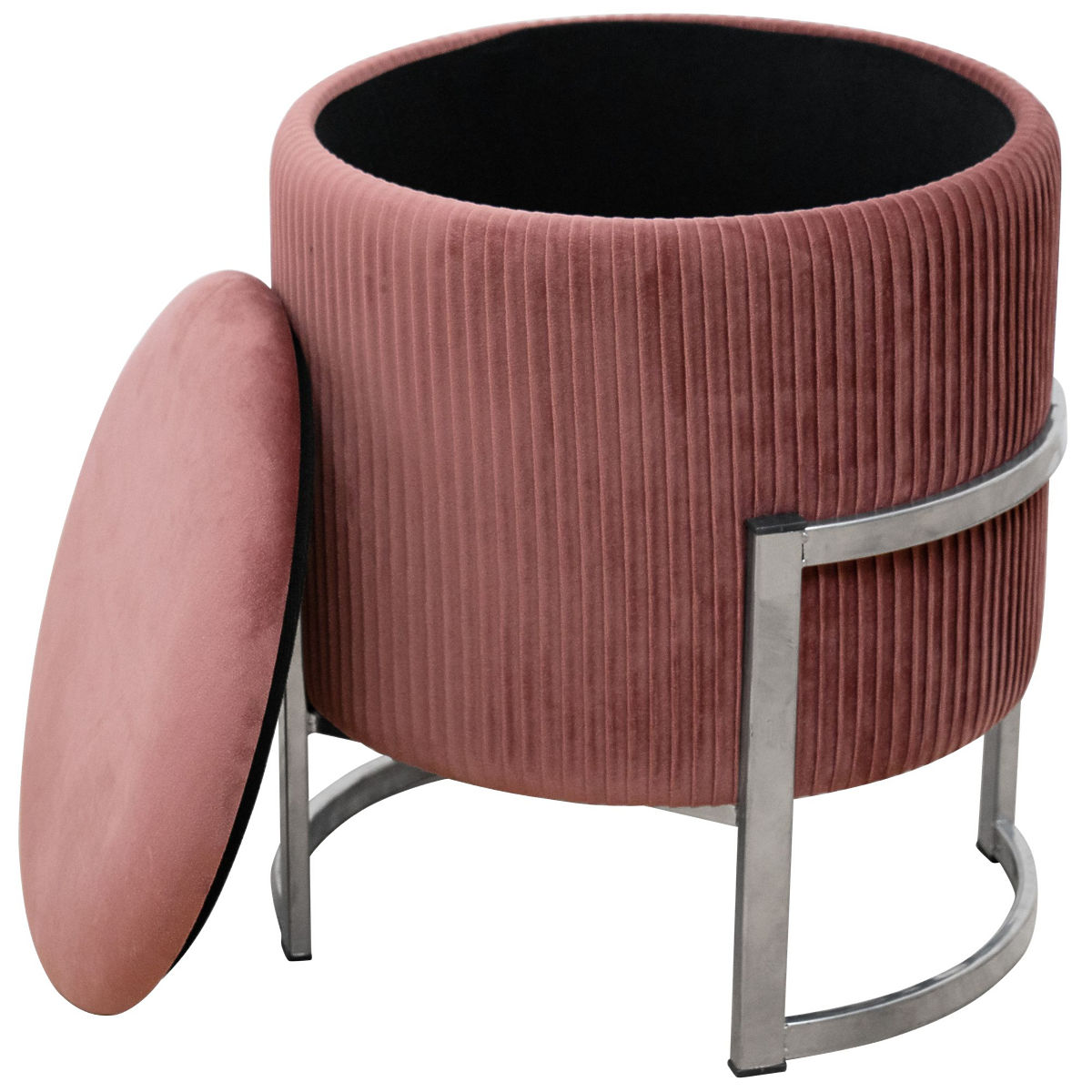 Pufa z ukrytym schowkiem na srebrnej metalowej podstawie. .. więcej
