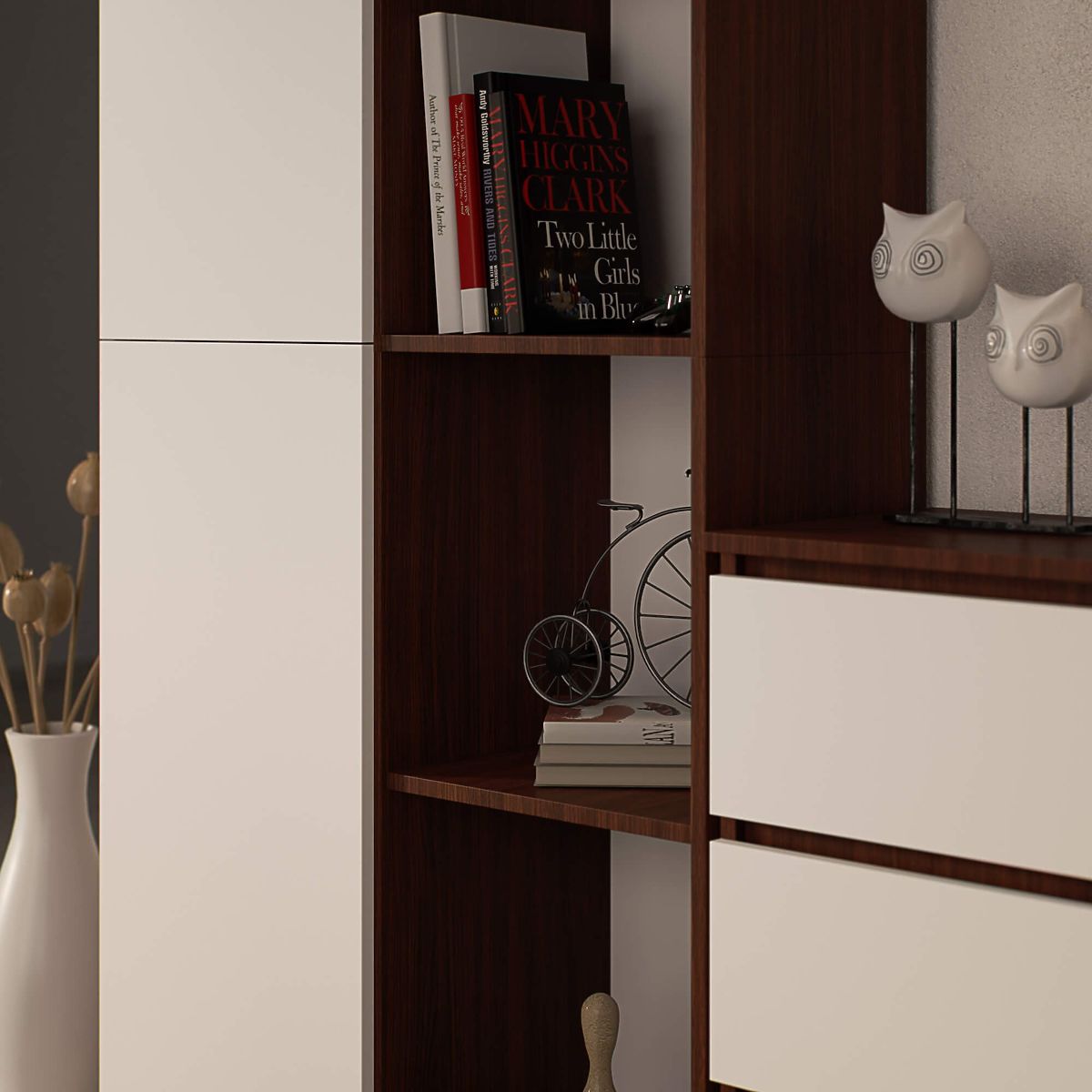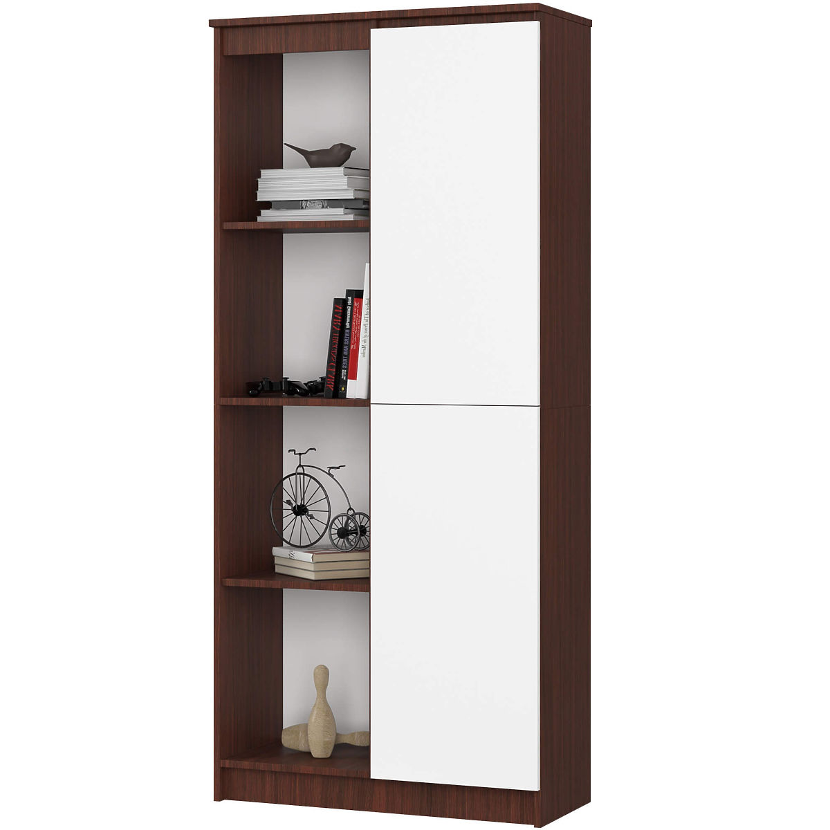 Regał biurowy z 8 półkami i drzwiami w kolorze wenge i białym. .. więcej