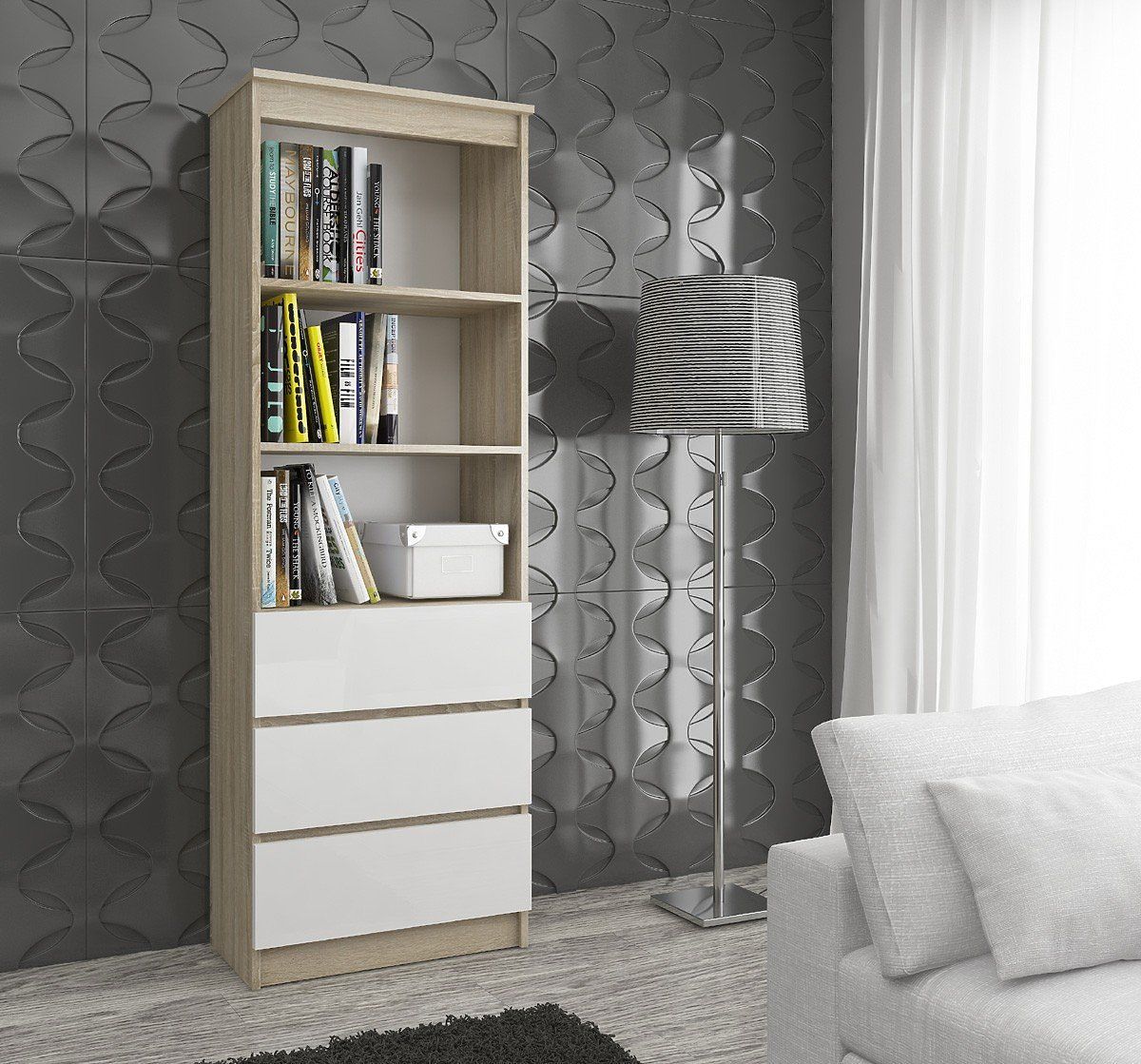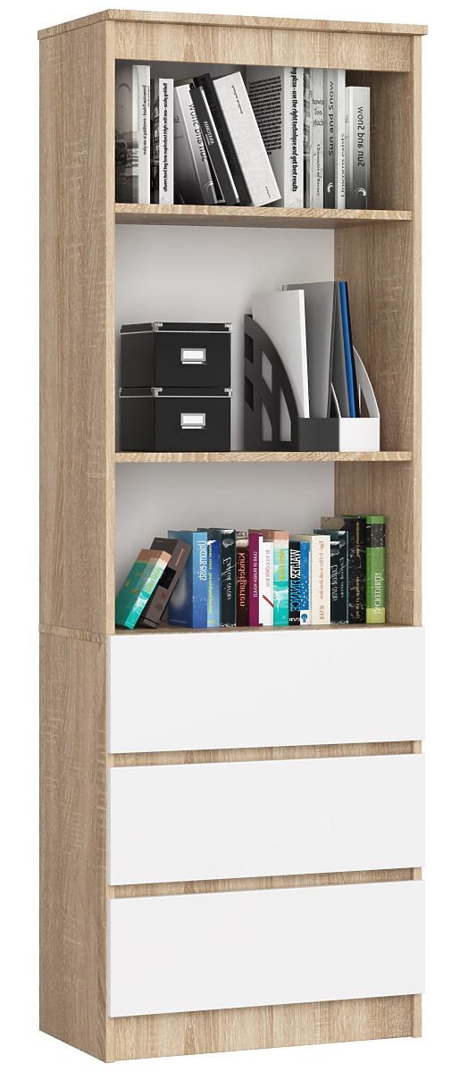 Regał biurowy CLP z 3 szufladami i 2 półkami w kolorze dąb sonoma i białym. .. więcej