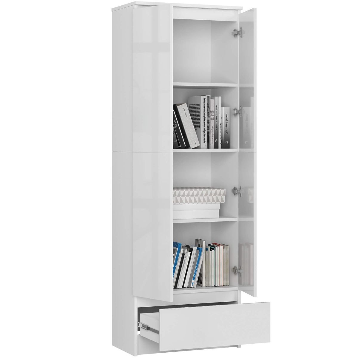 ZAMKNIĘTA BIBLIOTEKA CLP 60cm 1 SZUFLADA 2 DRZWI Korpus - Biały | Fronty - Biały Wysoki Połysk