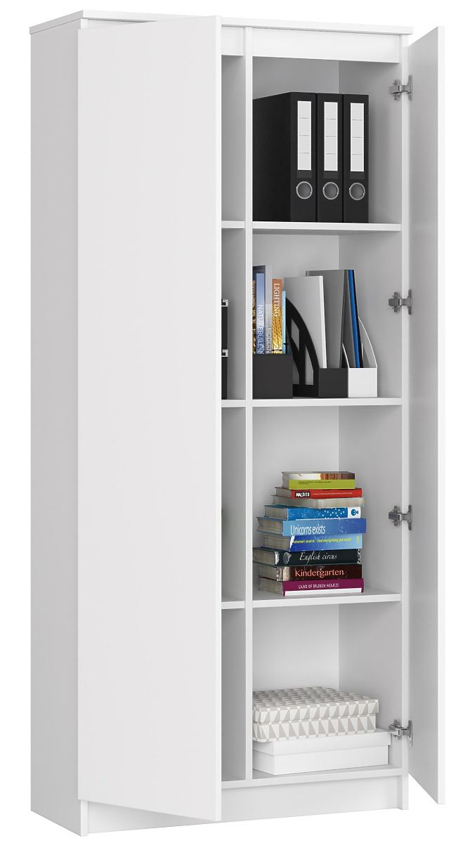 W przestrzeni biurowej niezwykle ważne jest, aby wszystko miało swoje miejsce. Jeśli nie wiesz, gdzie przechowywać rachunki, teczki i dokumenty, wkrada się niepotrzebny chaos. Doskonałym sposobem, aby temu zapobiec, jest nowoczesna biała szafa biurowa. Wyposażona jest w osiem przestronnych półek, na których wygodnie zmieszczą się wszystkie ważne rzeczy, a drzwi ochronią je przed niepotrzebnym kurzem. Mebel wykonany jest z trwałej laminowanej płyty, co gwarantuje jego trwałość i długotrwałe użytkowanie. Biurowy regał 80cm łączy w sobie urok i elegancję. Jego klasyczny wygląd doskonale pasuje do nowoczesnych, minimalistycznych przestrzeni, ale będzie również harmonizował z nieco bardziej ekstrawaganckimi wnętrzami. Nasza szafa biurowa jest coraz częściej wybierana nie tylko przez przedsiębiorców, ale także przez indywidualnych klientów, którzy cenią jej funkcjonalność i wysokie walory estetyczne. W połączeniu z korzystną ceną stanowi idealny element wyposażenia.