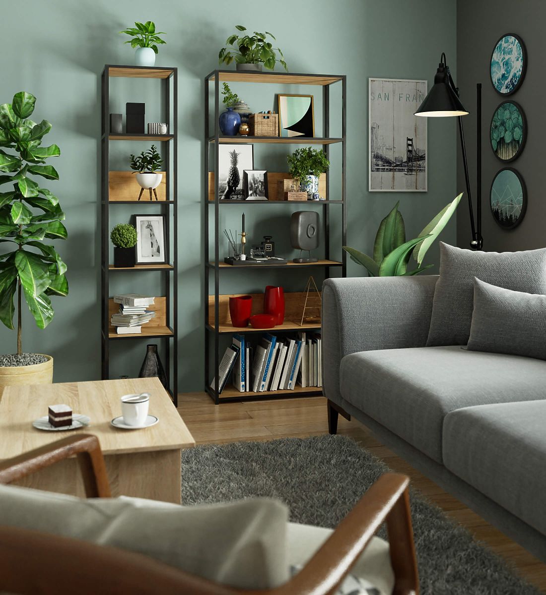- elegancki wygląd: regał charakteryzuje się prostą formą, rama jest czarna, natomiast półki są w kolorze dąb craft,