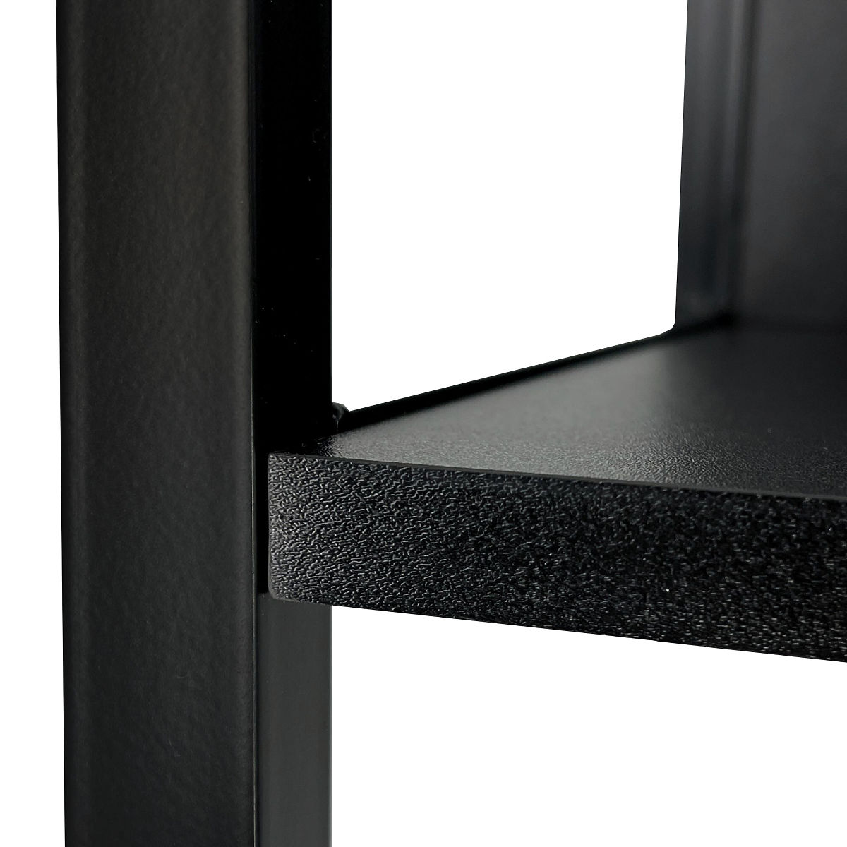 Głębokość - 32 cmMetalowy regał industrialny to praktyczny i nowoczesny mebel, który pasuje zarówno do salonu, jak i biura. Rama w kolorze czarnym. Półki regału wykonane są z laminowanej płyty o grubości 16 mm w kolorze czarnym. Jest to trwały i odporny materiał, który charakteryzuje się wysoką odpornością na ścieranie. Krawędzie są dodatkowo zabezpieczone obrzeżem ABS, dzięki czemu mebel będzie wyglądał dobrze nawet przy bardzo intensywnym codziennym użytkowaniu. Całkowity wygląd jest bardzo nowoczesny.