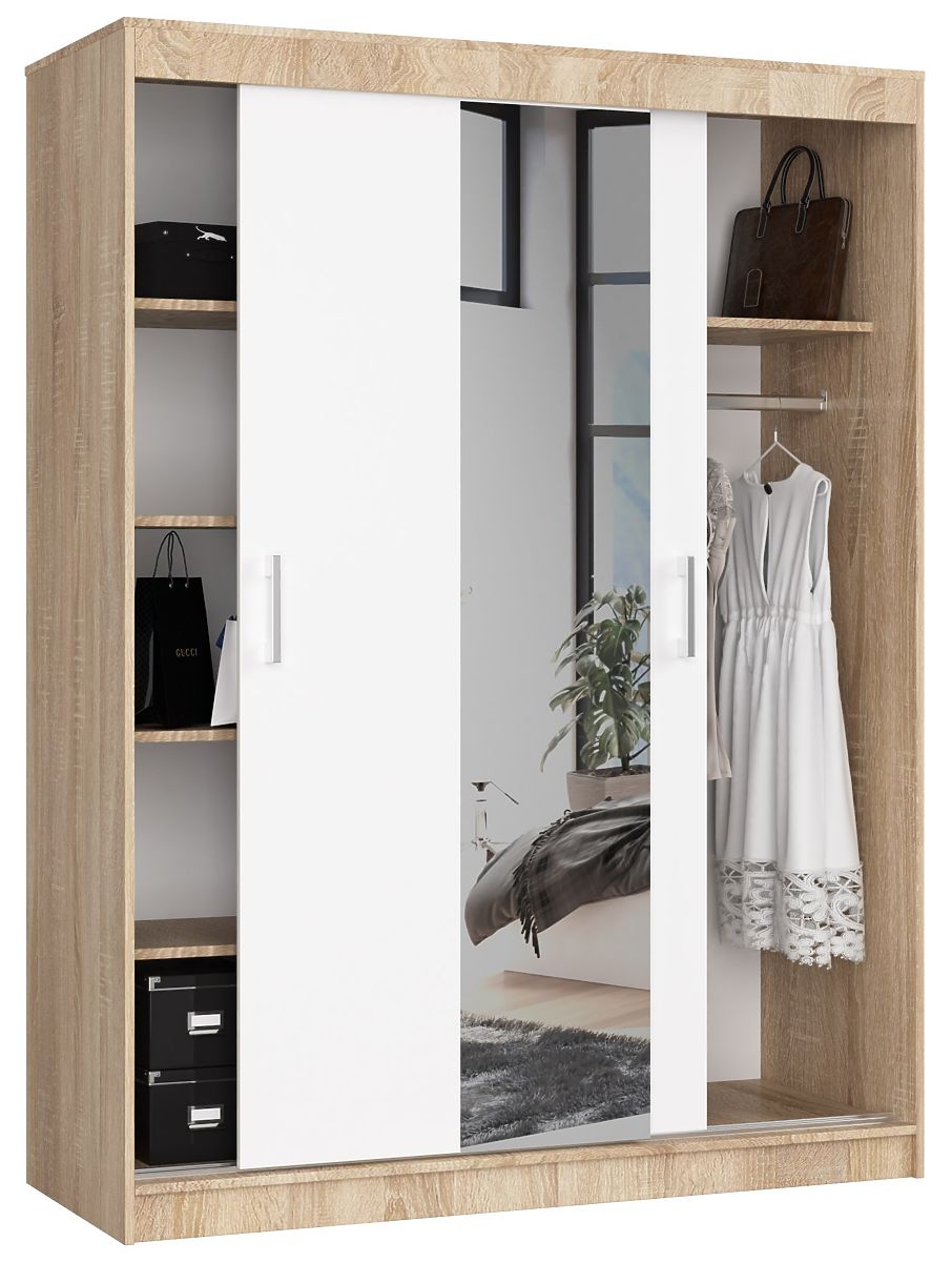Przesuwna szafa 150 cm CLP z lustrem w kolorze sonoma i białym. .. więcej