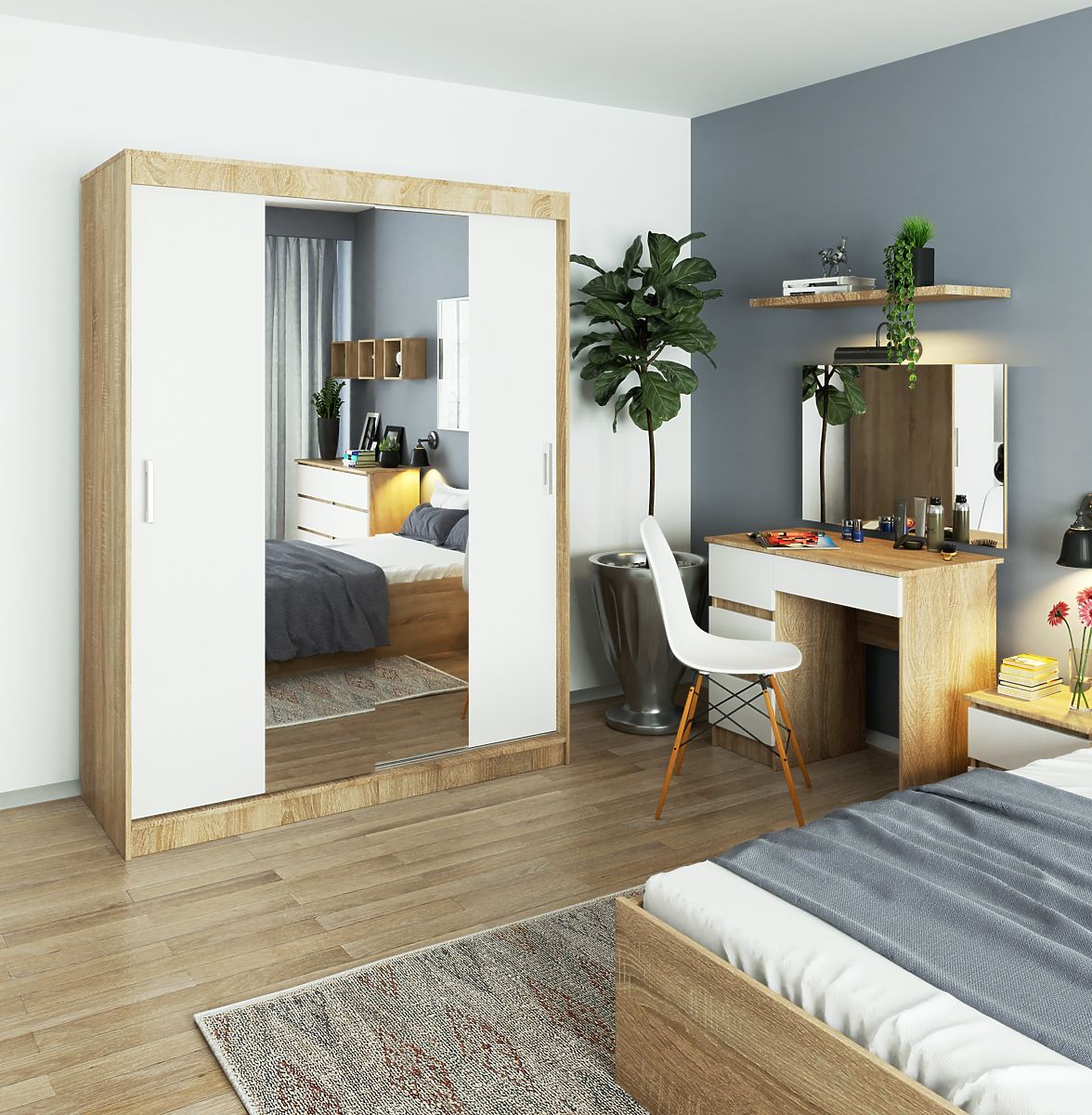 Szafa nie musi być nudnym meblem. Dzięki połączeniu dwóch kolorów i lustra wnosi do pomieszczenia więcej życia. Jest jednocześnie funkcjonalna i ułatwia utrzymanie porządku w ubraniach. Zachwyca także swoją trwałością, służąc przez wiele lat.