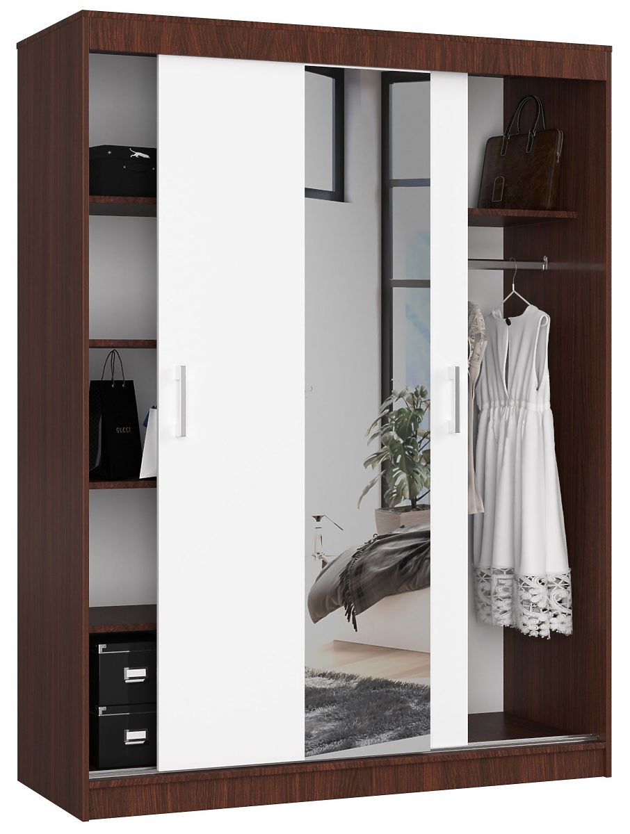 Przesuwna szafa 150 cm z lustrem i półkami w kolorze wenge i białym. .. więcej