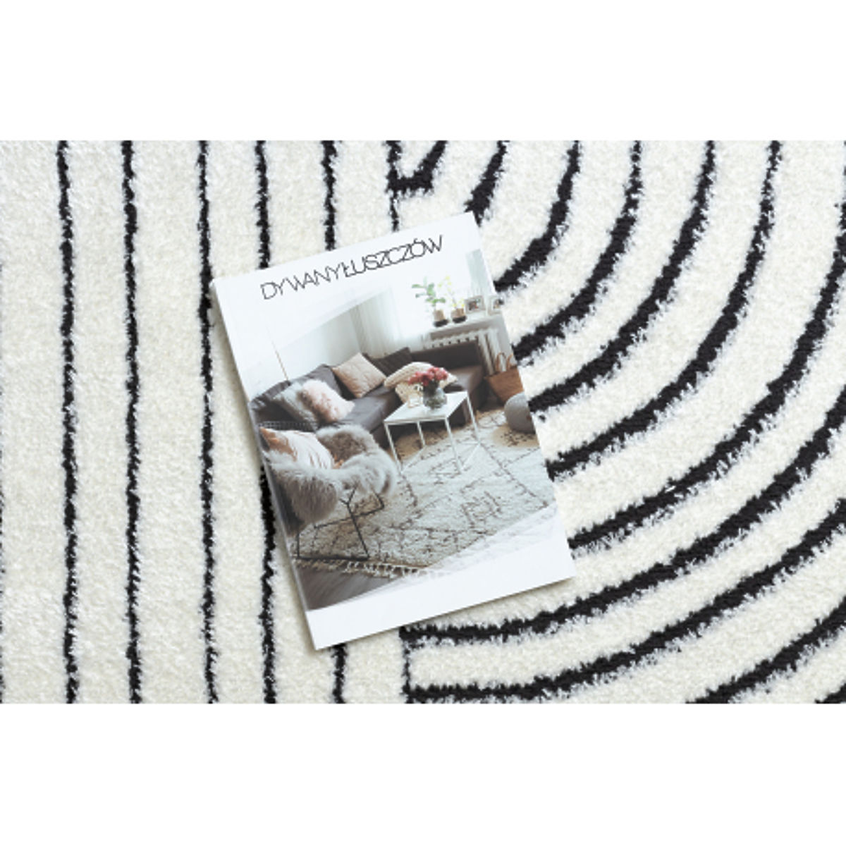 Geometryczny dywan z kremowym i czarnym wzorem. .. więcej
