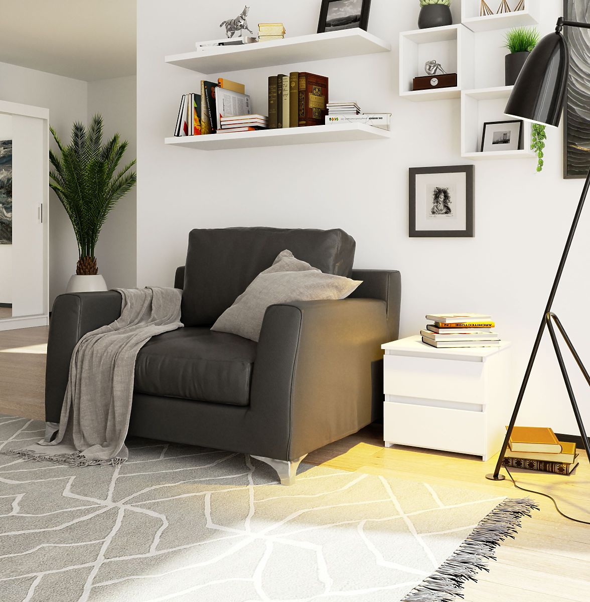 Szafka nocna to jeden z podstawowych mebli w sypialni. Szafka nocna jest w kolorze białym, wykonana z laminowanej płyty o grubości 16 mm, która jest dodatkowo odporna na ścieranie. Fronty i boki szafki nocnej oklejone są obrzeżem ABS, co zapewnia większą odporność na drobne uszkodzenia mechaniczne, takie jak zarysowania. Posiada dwie przestronne szuflady bez uchwytów, w których zmieszczą się wszystkie niezbędne przedmioty, które powinny być pod ręką. Szafka ma wymiary 40 cm długości, 40 cm wysokości i 35 cm głębokości. Szuflady wyposażone są w metalowe prowadnice rolkowe, które można łatwo wyjąć i wyczyścić w razie potrzeby. Dzięki uniwersalnemu wzorowi i kolorowi pasuje do każdej sypialni i można ją z powodzeniem łączyć z innymi meblami z systemu CLP. Nowoczesny, a jednocześnie minimalistyczny wygląd umożliwia łatwe wkomponowanie w wiele stylów wnętrz. Blat jest wystarczająco duży, aby pomieścić zarówno lampkę nocną, jak i drobne dekoracje czy książkę.