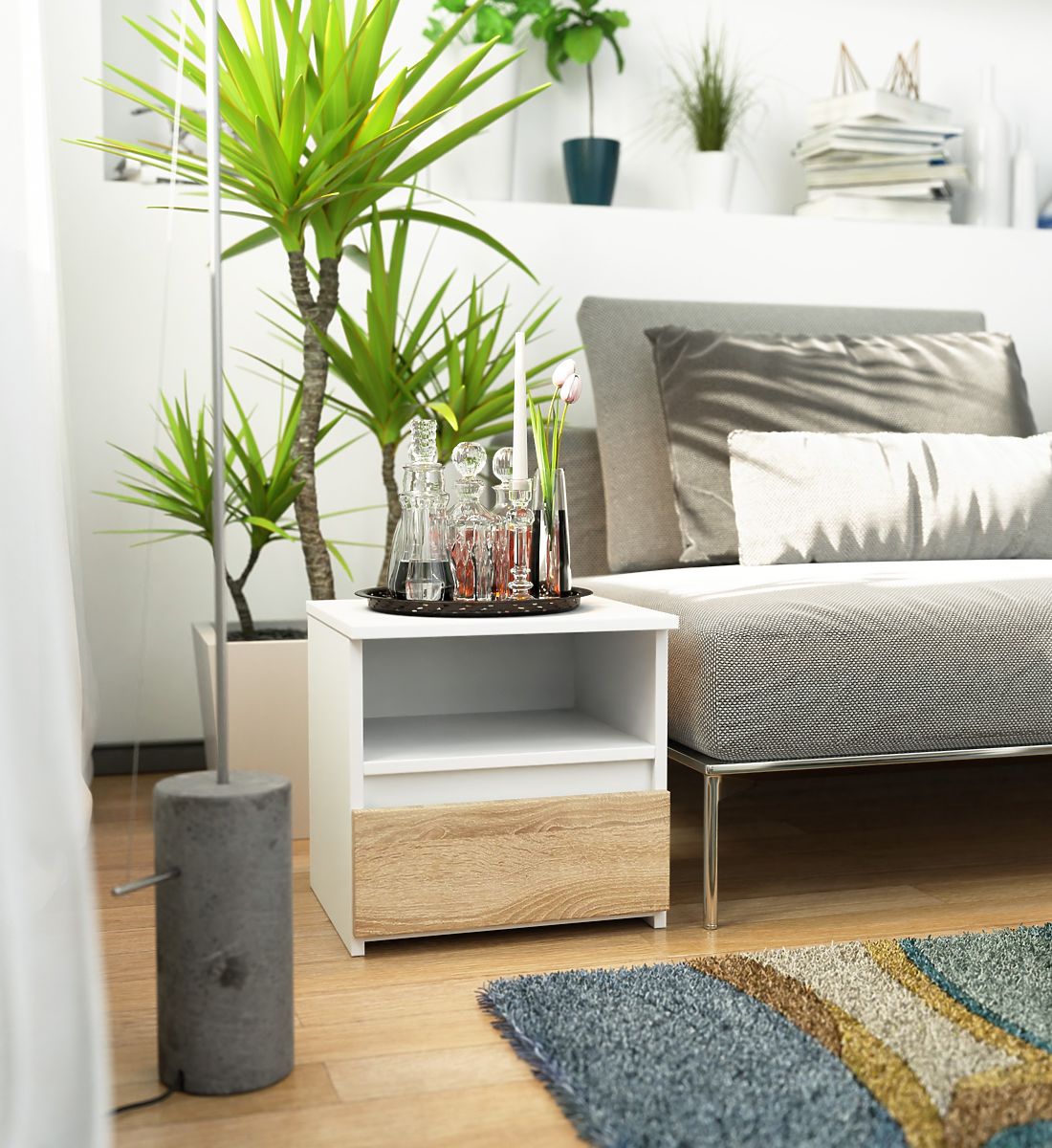 Stoliki nocne to popularny rodzaj mebli, które umieszcza się obok łóżka. Na jego blacie najczęściej znajduje się lampka, a wewnątrz przedmioty ułatwiające odpoczynek i sen. Osoby poszukujące eleganckiej komody powinny zwrócić uwagę na stolik nocny CL1 40 cm w kolorze białym / dąb sonoma. Będzie się pięknie prezentować w każdej sypialni. Można go również umieścić w pokoju dziecięcym.