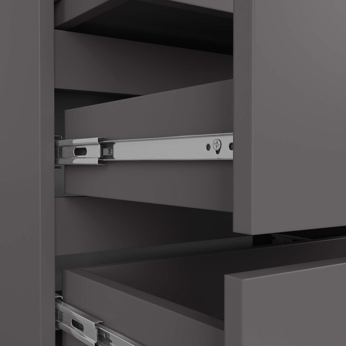 - Szuflady poruszają się na metalowych prowadnicach kulkowych