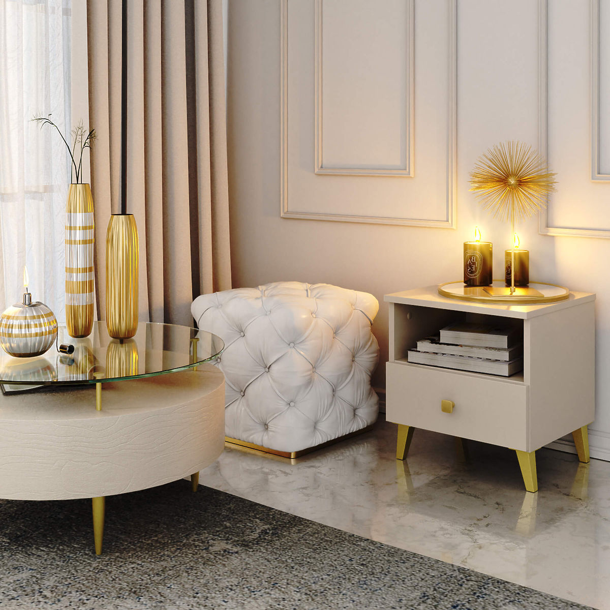 STOLIK NOCNY MOBI 1 SZUFLADA 1 PÓŁKA KASZMIR ZŁOTO