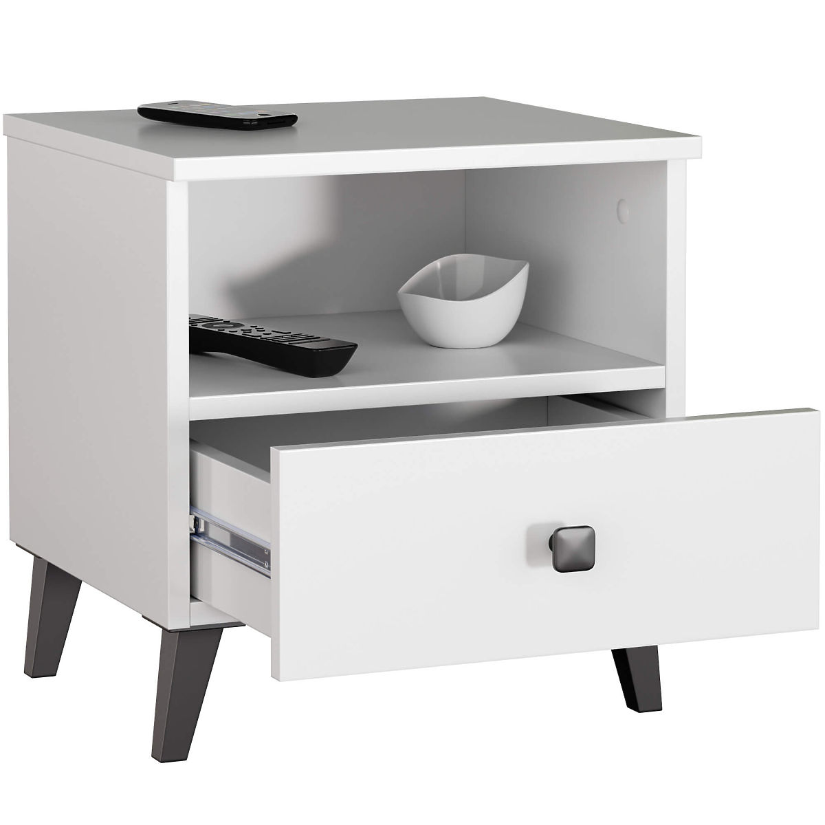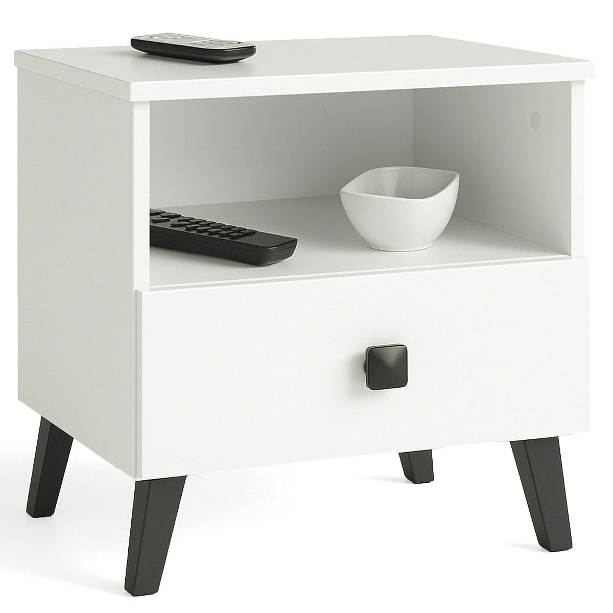 STOLIK NOCNY MOBI 1 SZUFLADA 1 PÓŁKA BIAŁA CZARNA