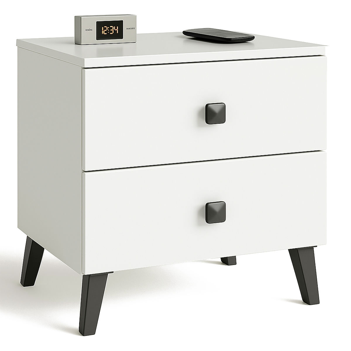 STOLIK NOCNY MOBI 2 SZUFLADY BIAŁY CZARNY