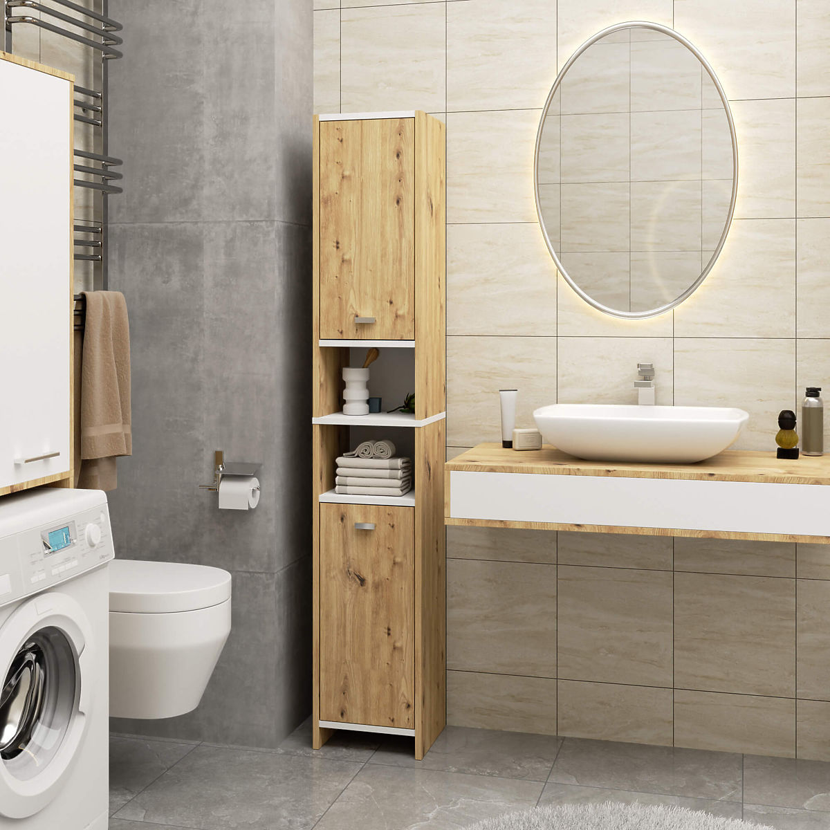 Lukahome.pl » Łazienka i toaleta / Szafki łazienkowe / REGAŁ ŁAZIENKOWY BETI 2D 2W DĄB ARTISAN BIAŁY
