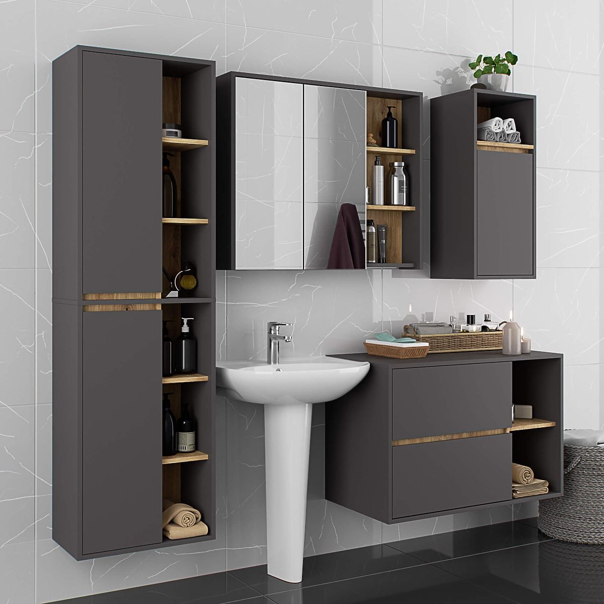 Wysoka wisząca szafka łazienkowa z 2 drzwiami, kolor grafitowy szary / dąb Artisan. .. więcej
