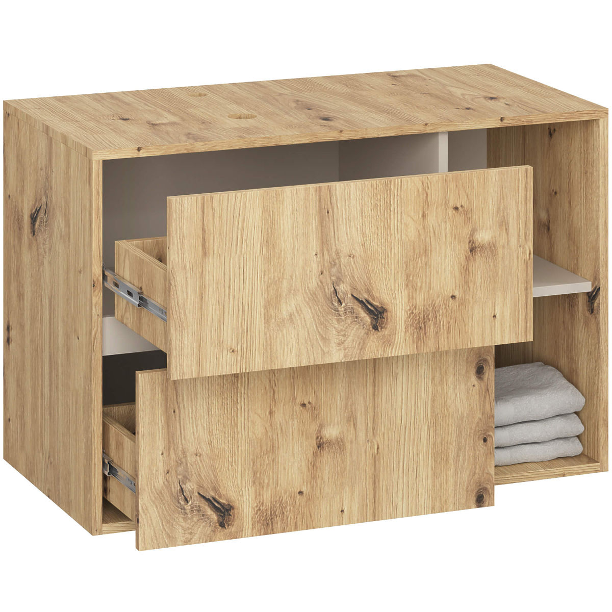 Lukahome.pl » Łazienka i toaleta / Szafki łazienkowe / SZAFKA ŁAZIENKOWA POD UMYWALKĘ Z OTWORAMI VAMI W90 UM 2SZ 2P DĄB ARTISAN / KASZMIR